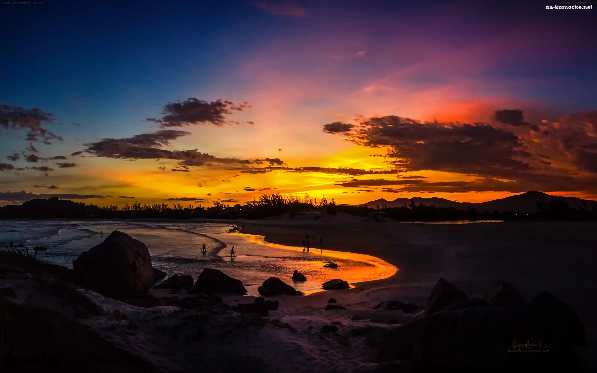 Jezioro, Chmury, Zachód, Słońca na Komórkę