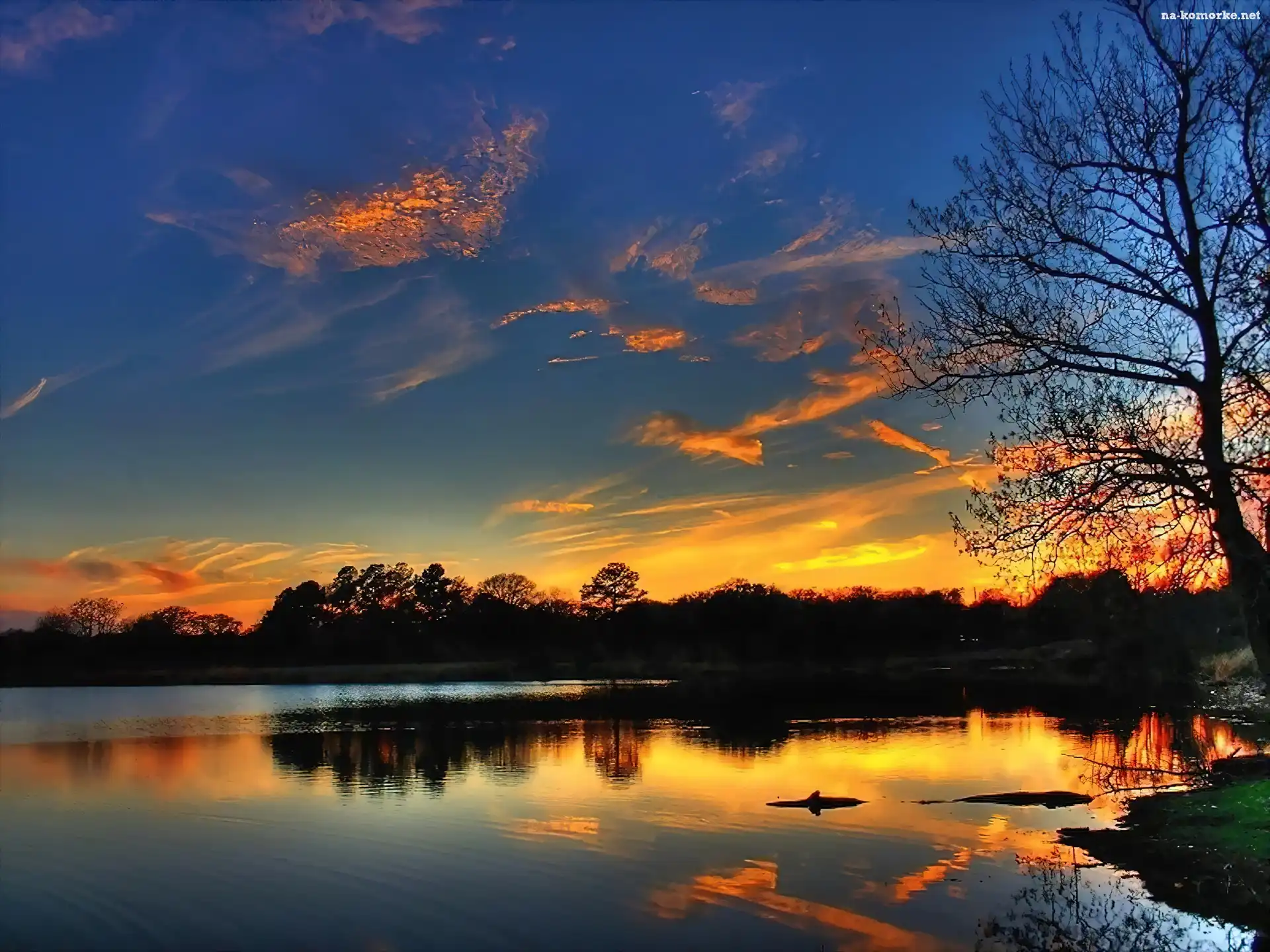 Jezioro, Odbicie, Zachód, Słońca na Komórkę