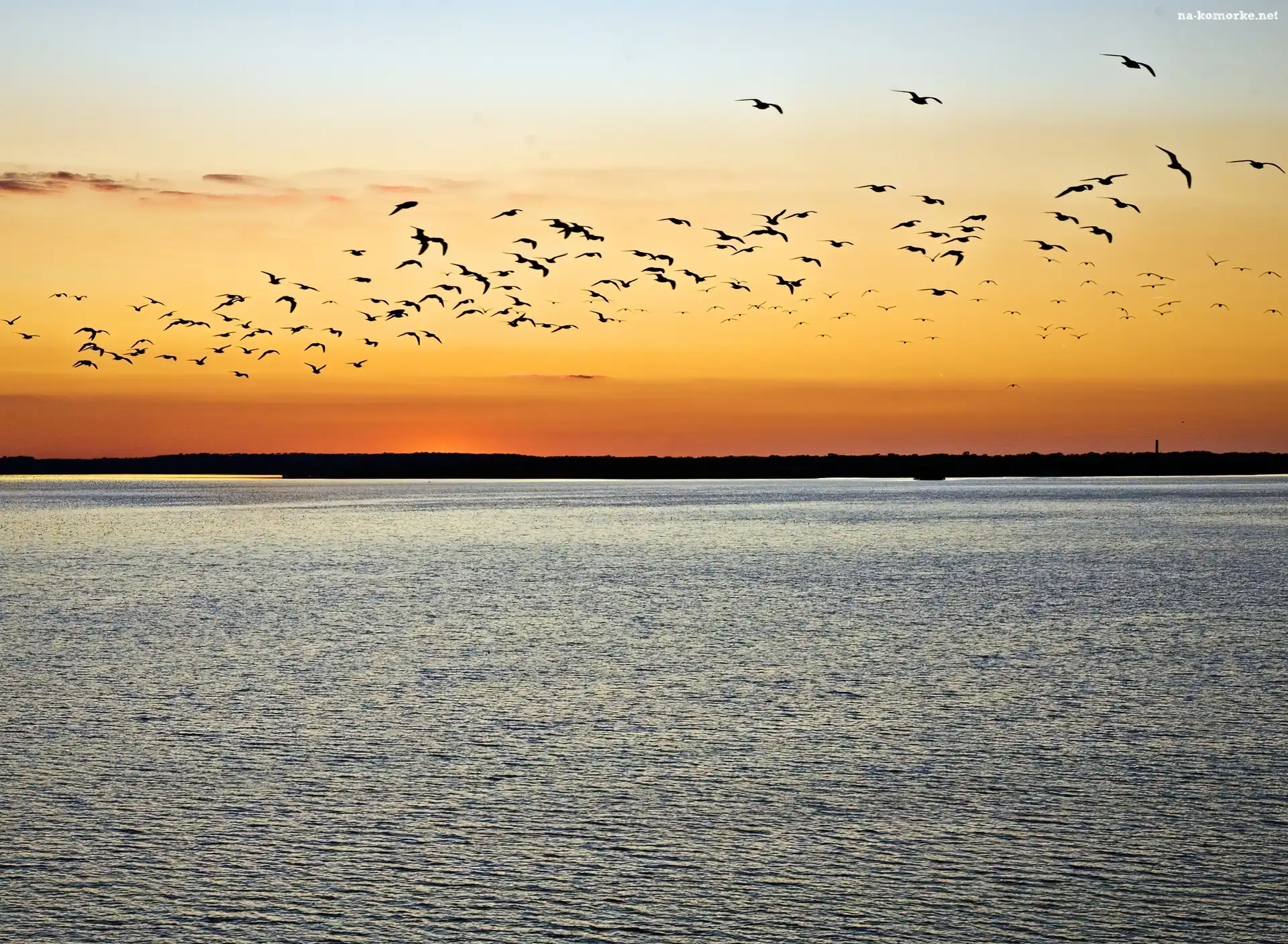 Jezioro, Niebo, Ptaki, Zachód Słońca na Komórkę