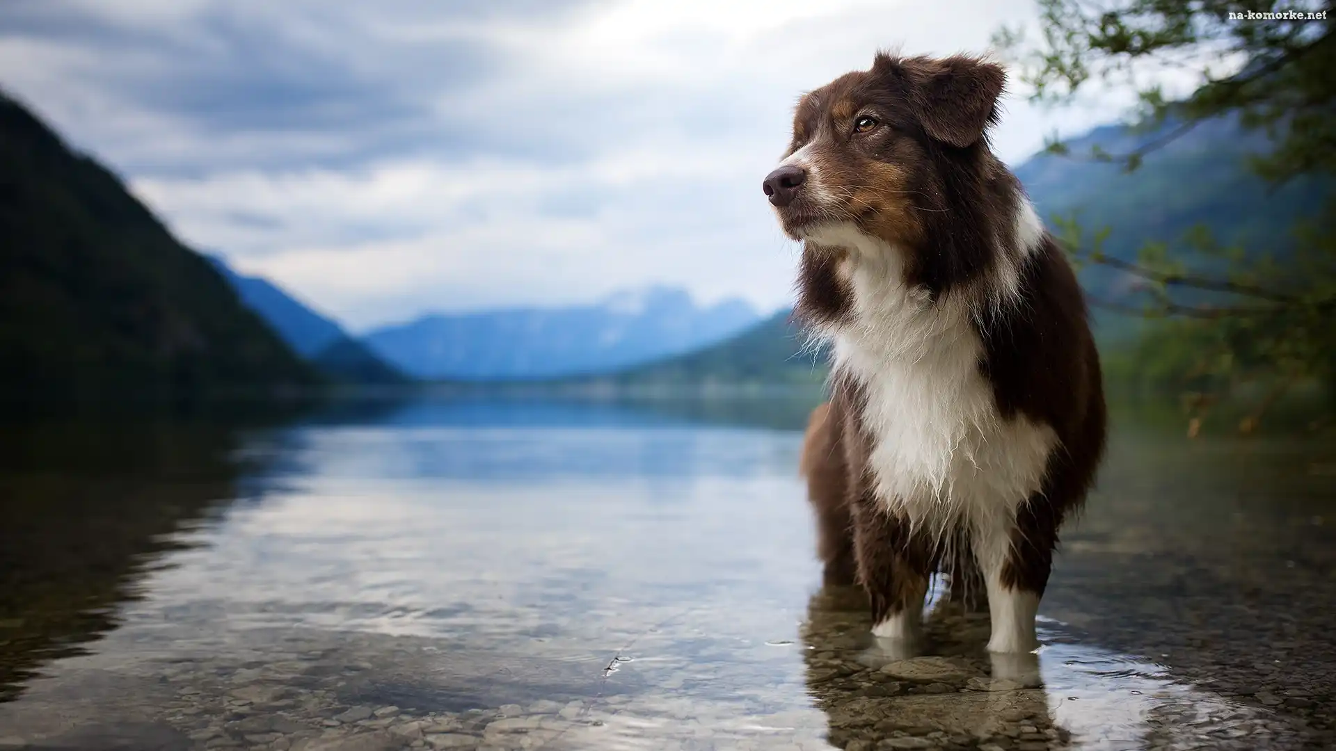 Jezioro, Pies, Owczarek australijski, Zanurzone, Łapy na Komórkę