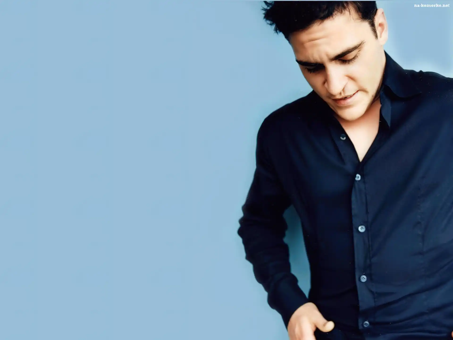 Joaquin Phoenix, czarna koszula na Komórkę