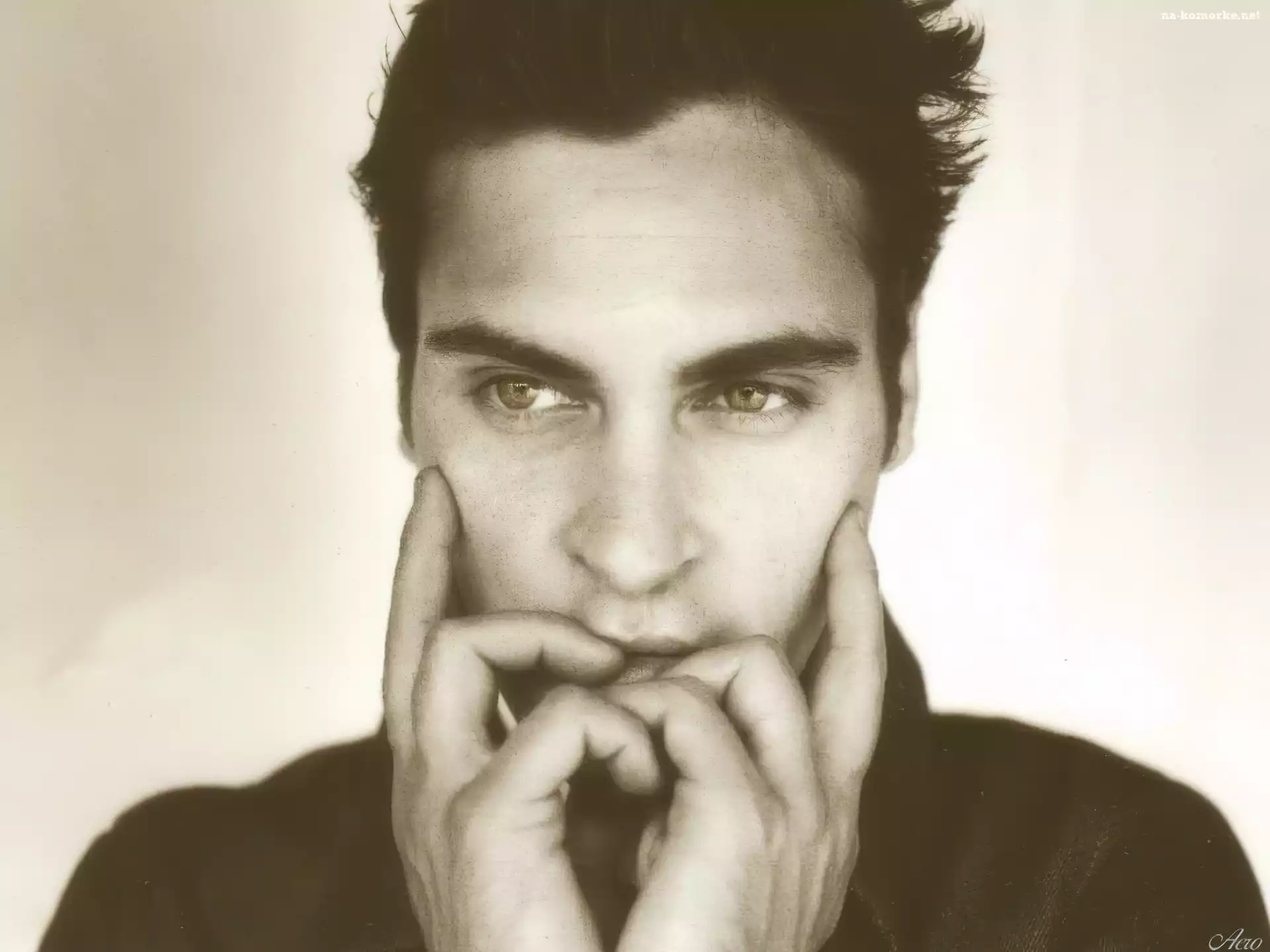 Joaquin Phoenix, ciemne włosy, ręce na Komórkę