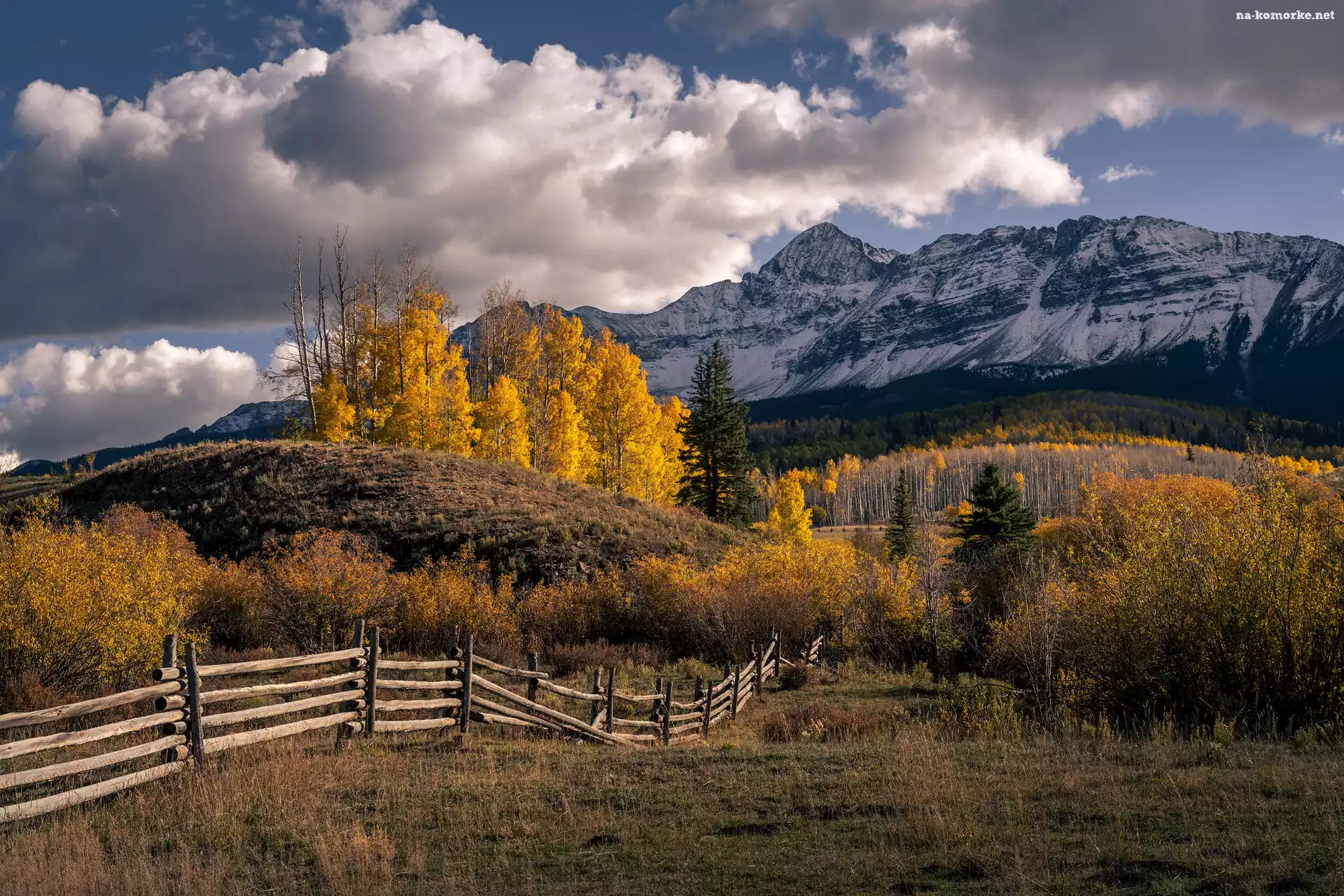Chmury, Góry, Stany Zjednoczone, Ogrodzenie, Drzewa, Pożółkłe, Jesień, San Juan Mountains, Kolorado na Komórkę |