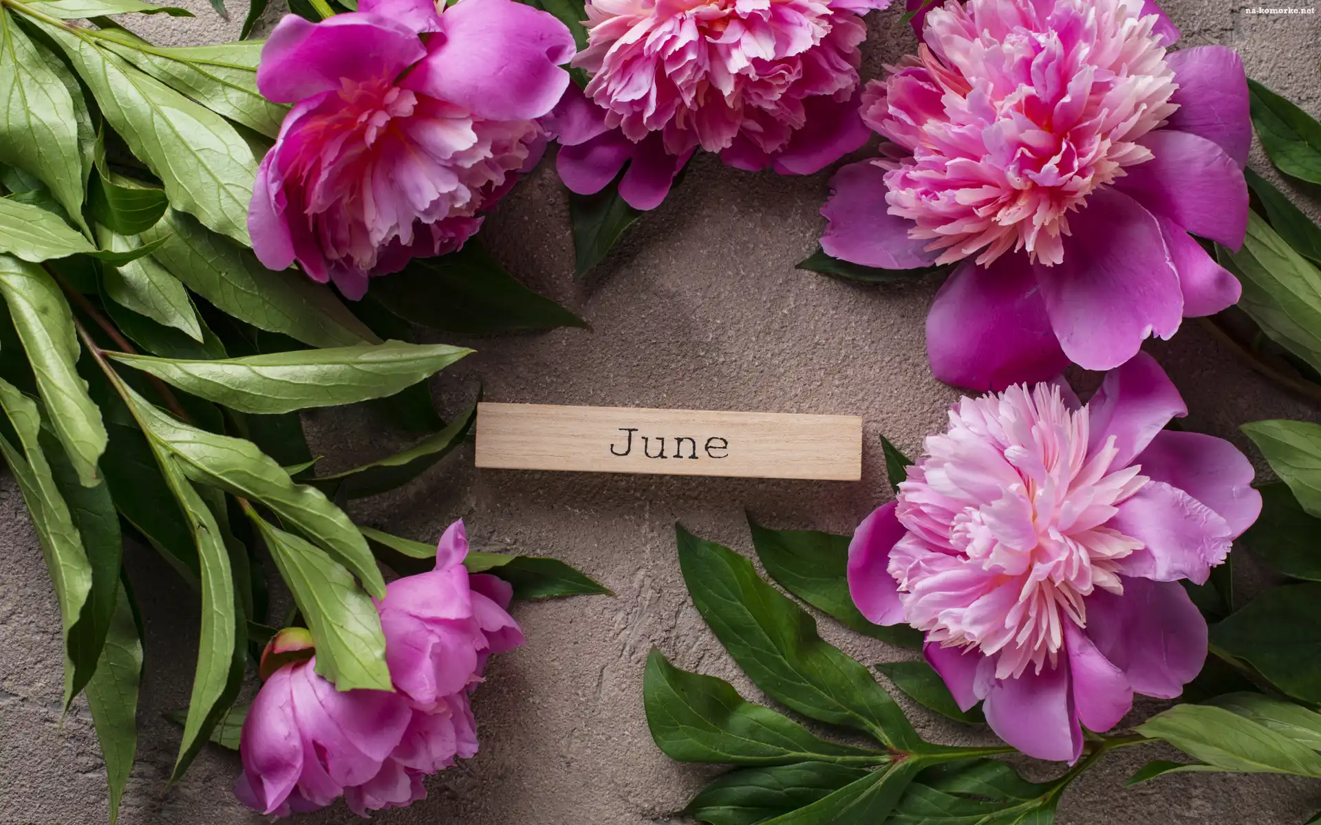 June, Kwiaty, Piwonie, Klocek, Napis na Komórkę