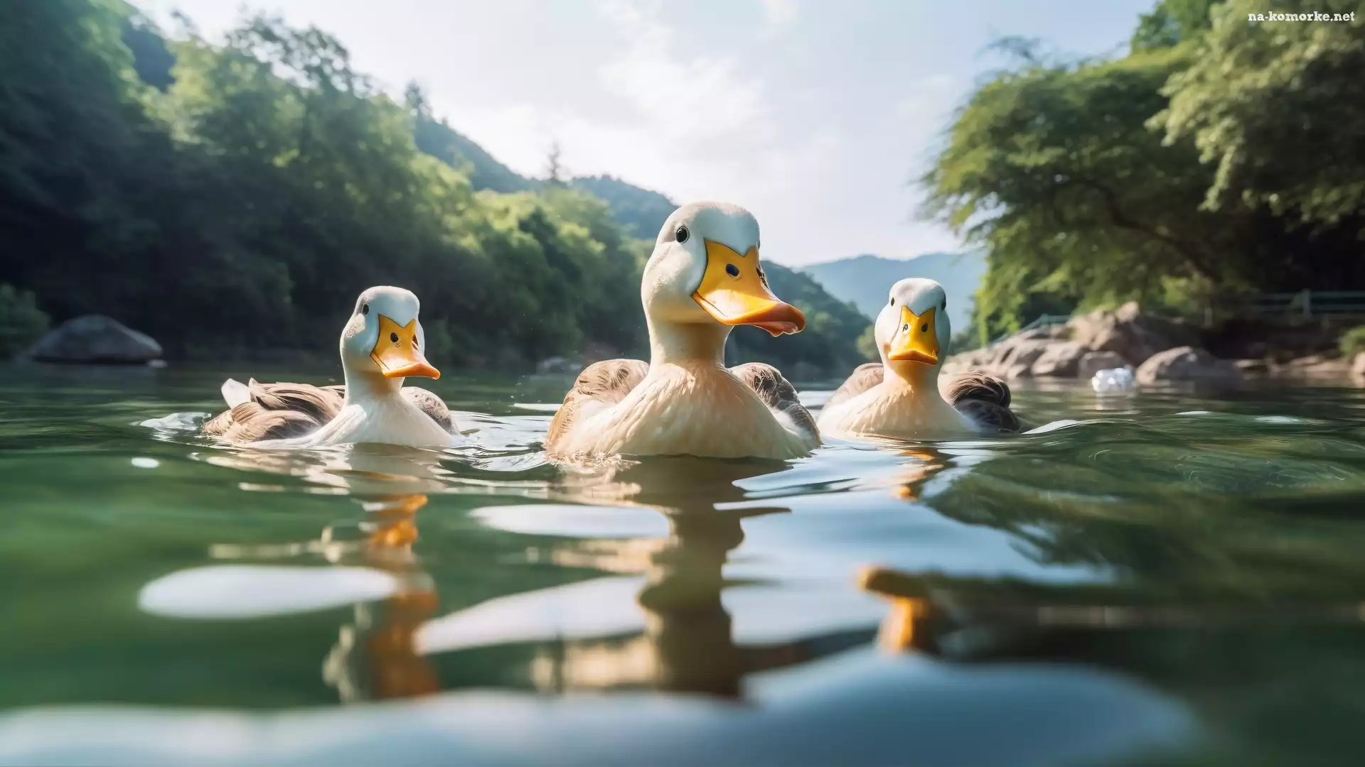 Kaczki, Grafika, Woda na Komórkę