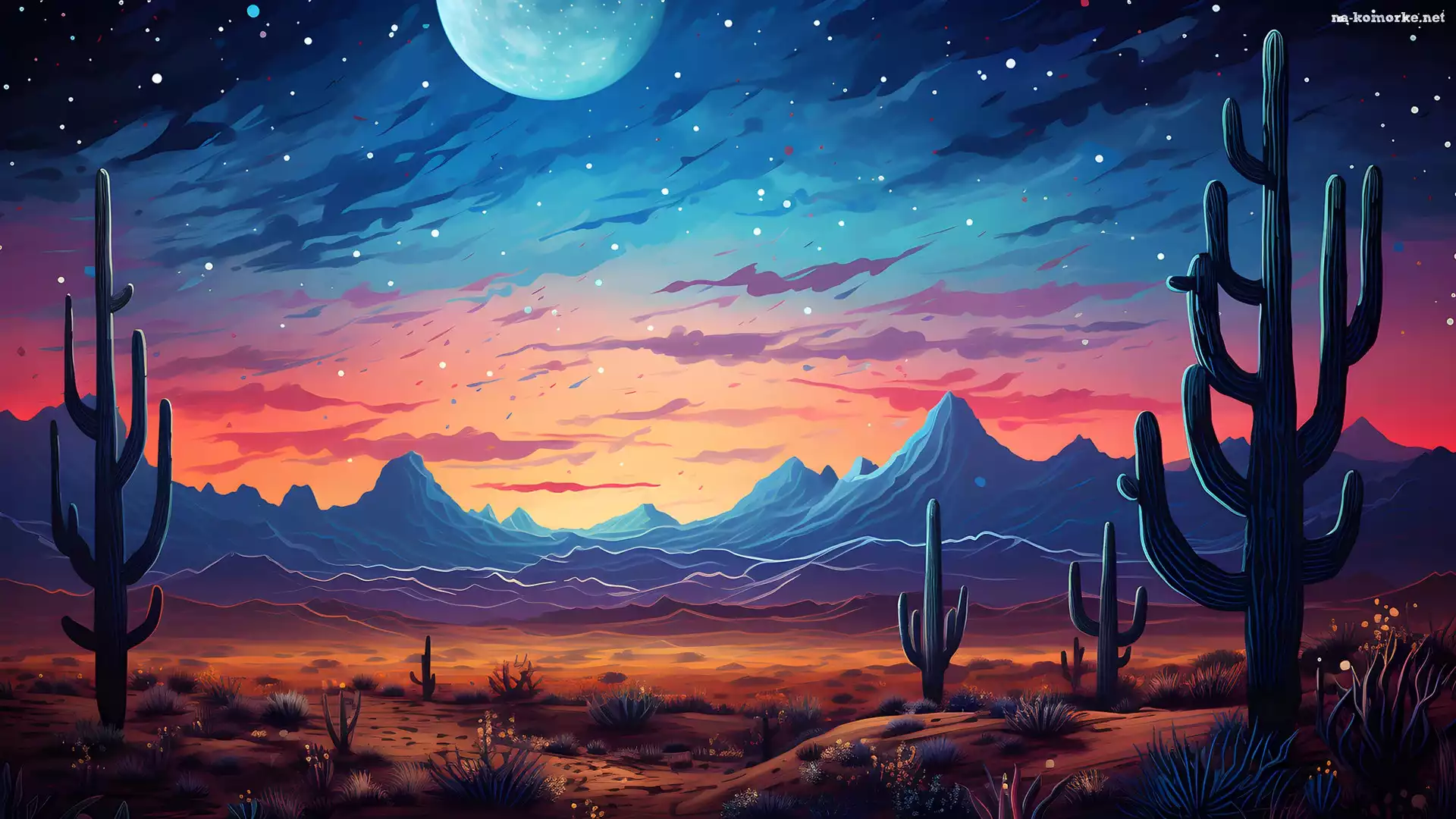 Rośliny, Grafika, Niebo, Kaktusy, Kolorowe, Góry na Komórkę