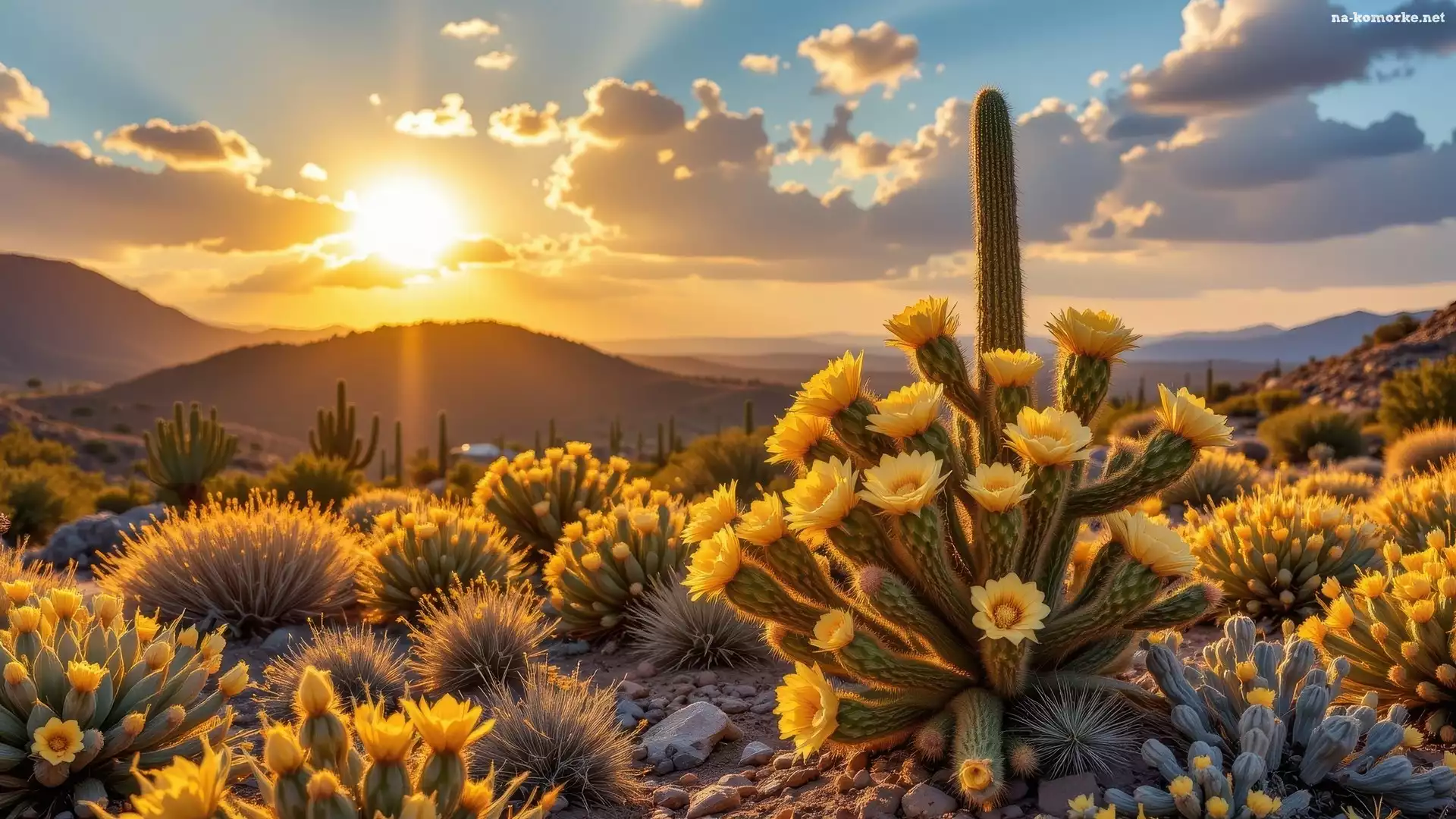 Żółte, Kępki, Słońce, Kwitnące, Góry, Roślin, Kwiaty, Kaktusy na Komórkę