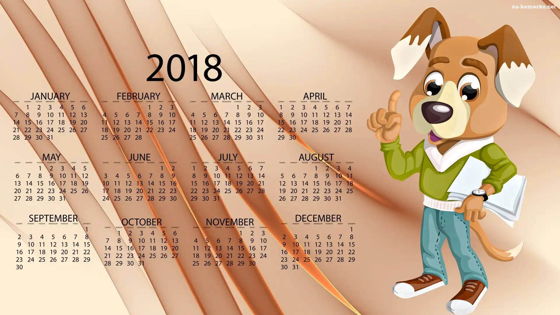 Kalendarz, Grafika 2D, Rok 2018, Pies na Komórkę