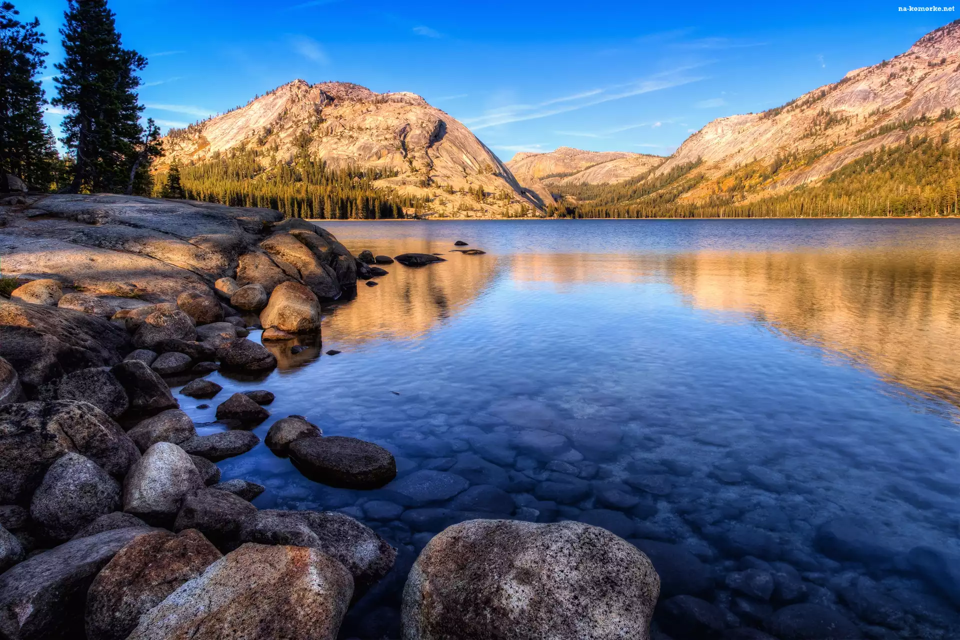 Góry, Stan Kalifornia, Stany Zjednoczone, Kamienie, Park Narodowy Yosemite, Jezioro Tenaya na Komórkę |