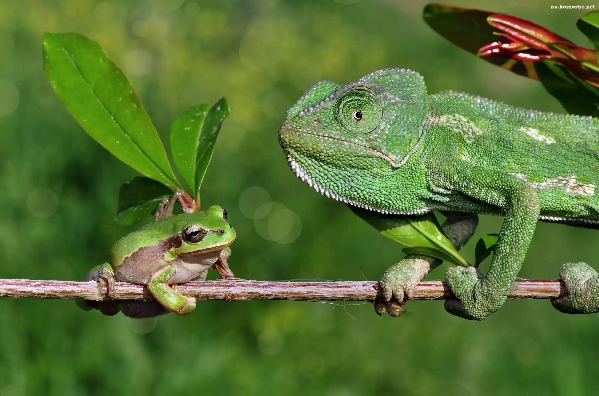 Kameleon, Gałąź, Żabka, Rzekotka na Komórkę