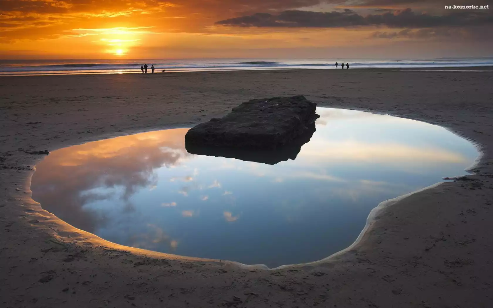 Kamień, Zachód, Słońca, Morze, Plaża na Komórkę