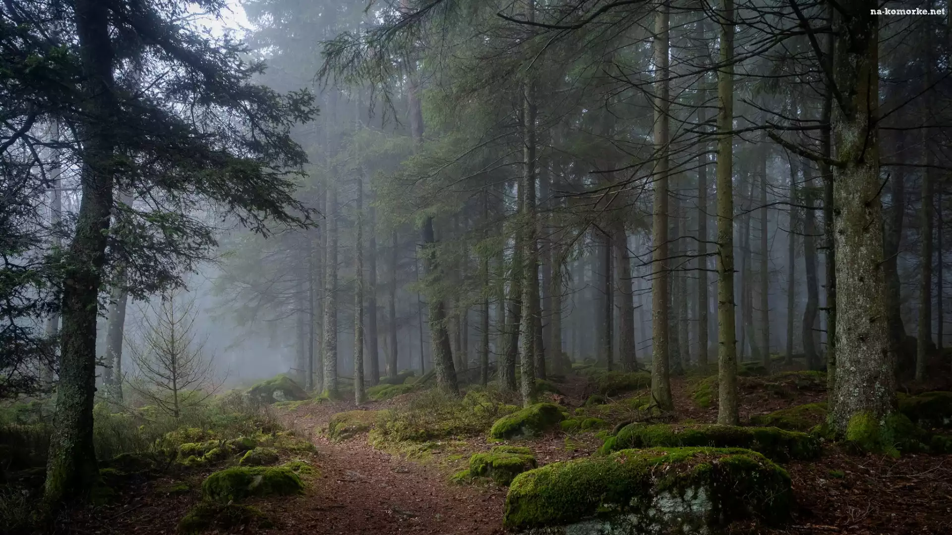 Omszałe, Las, Mgła, Kamienie, Ścieżka, Drzewa na Komórkę