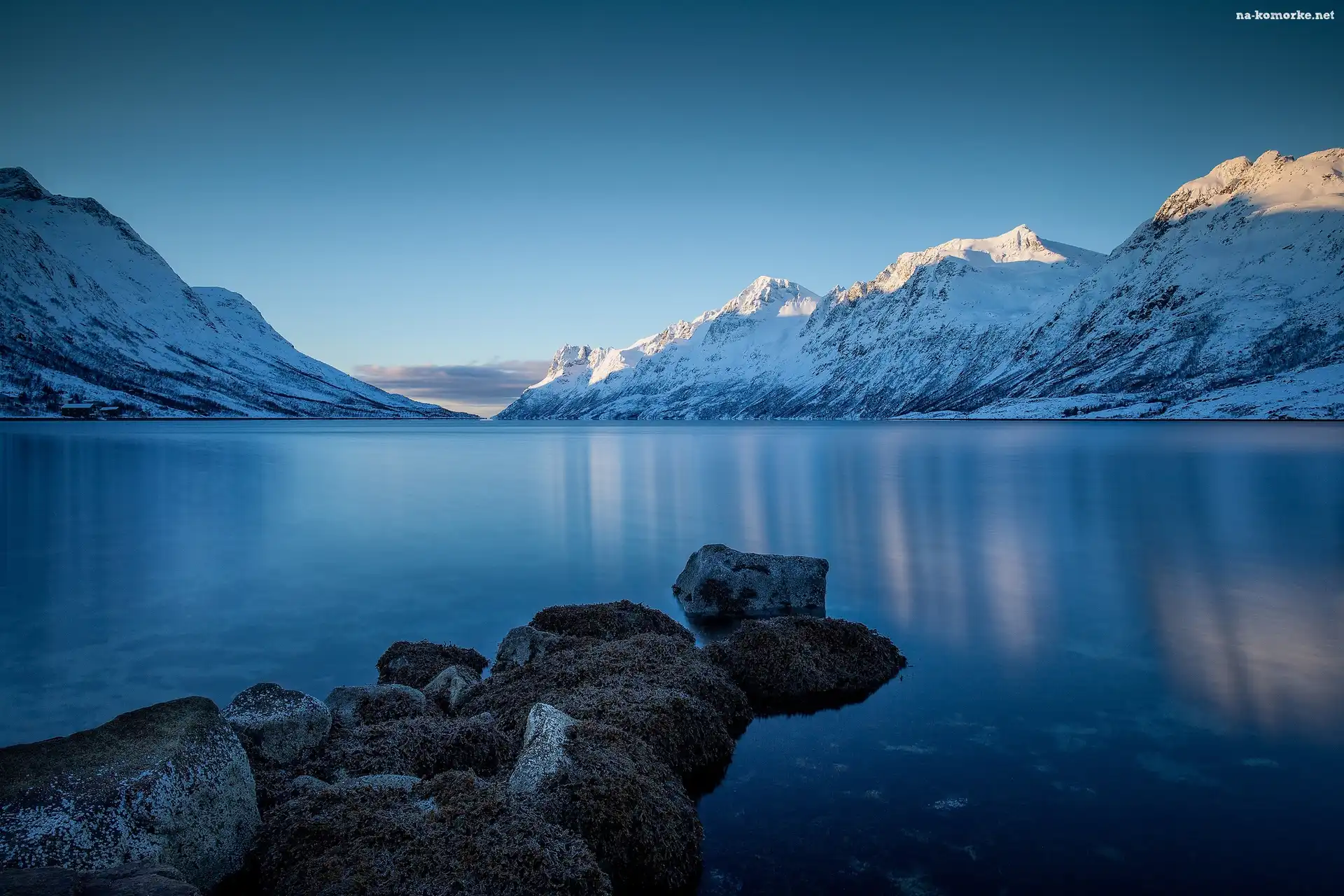 Kamienie, Zima, Śnieg, Góry, Jezioro na Komórkę
