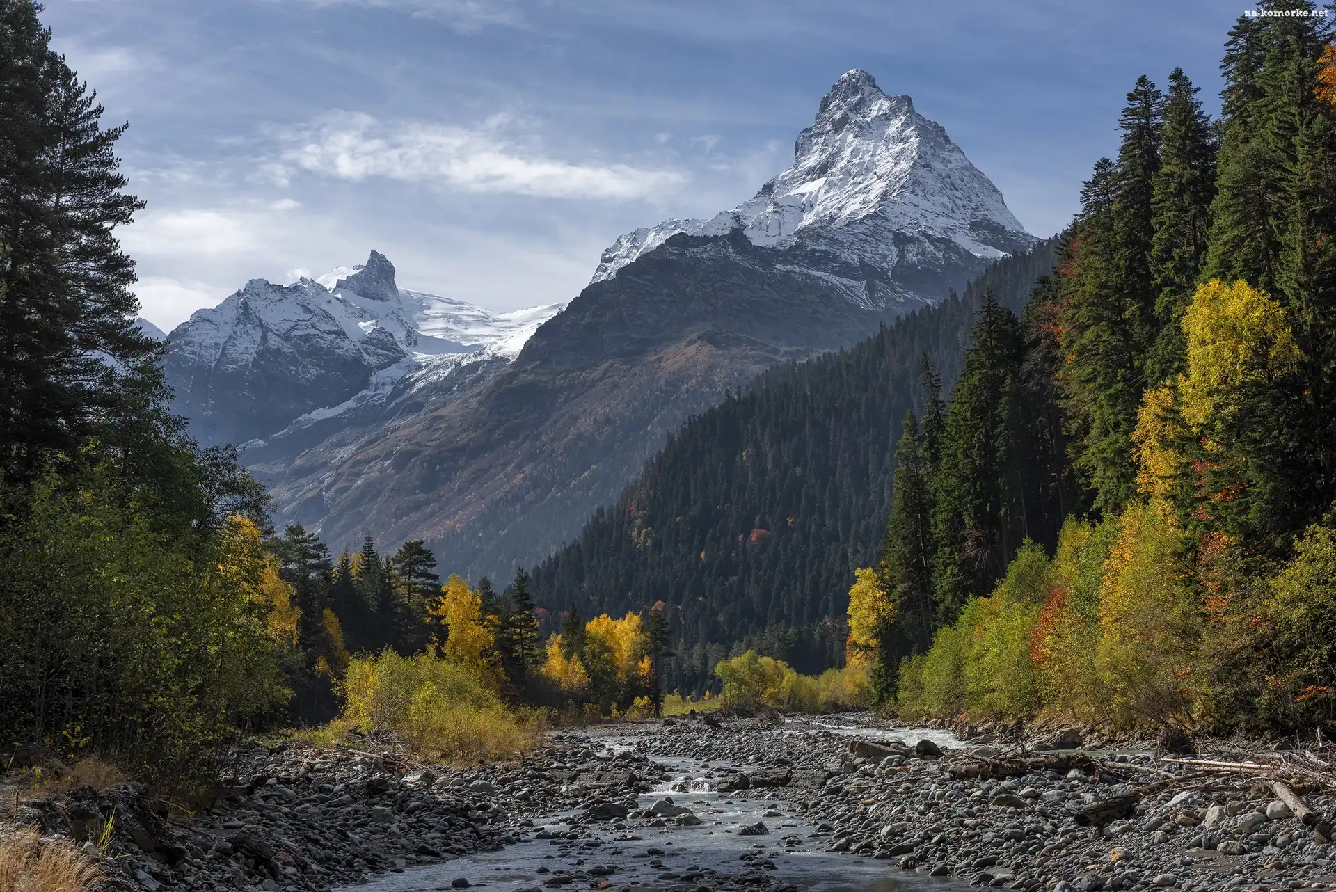 Kamienie, Jesień, Rzeka, Góry, Las na Komórkę