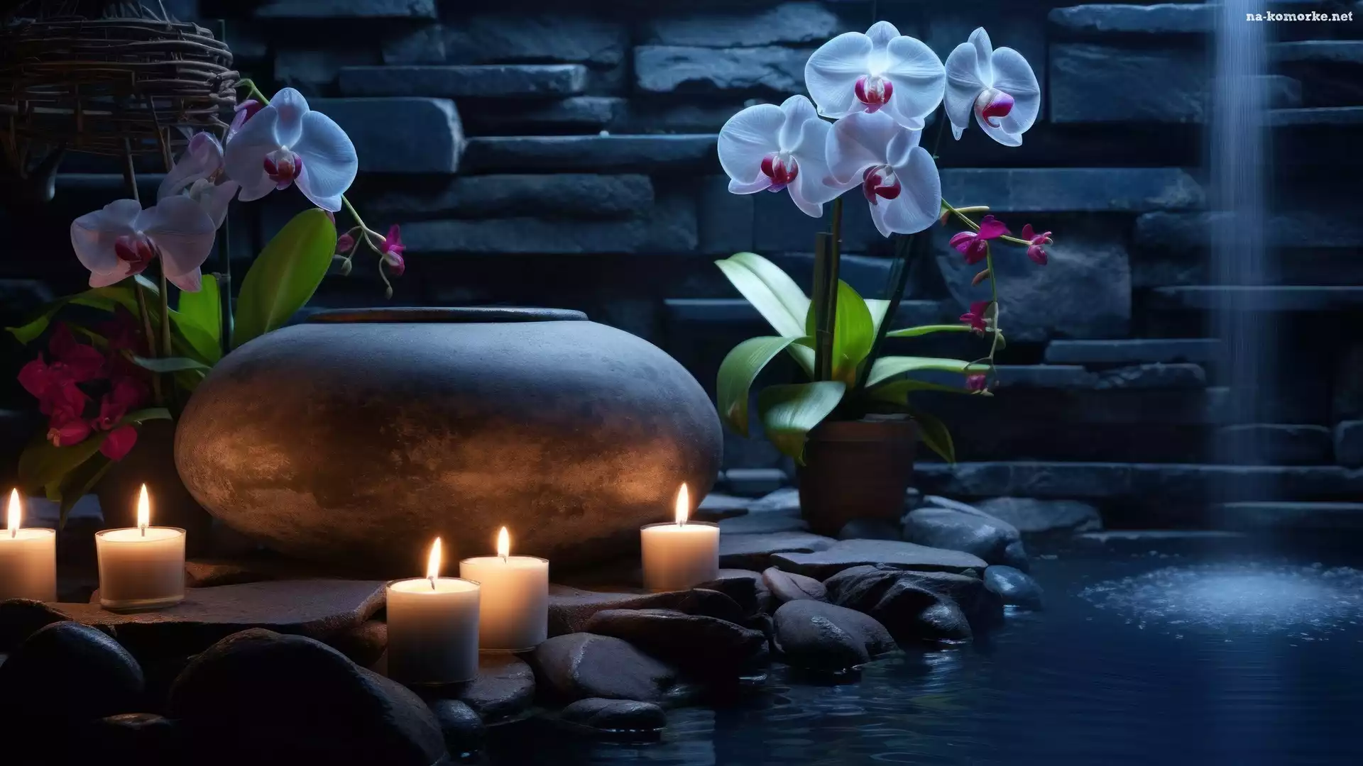 Świece, Kamienie, Grafika, Storczyki, Kompozycja na Komórkę