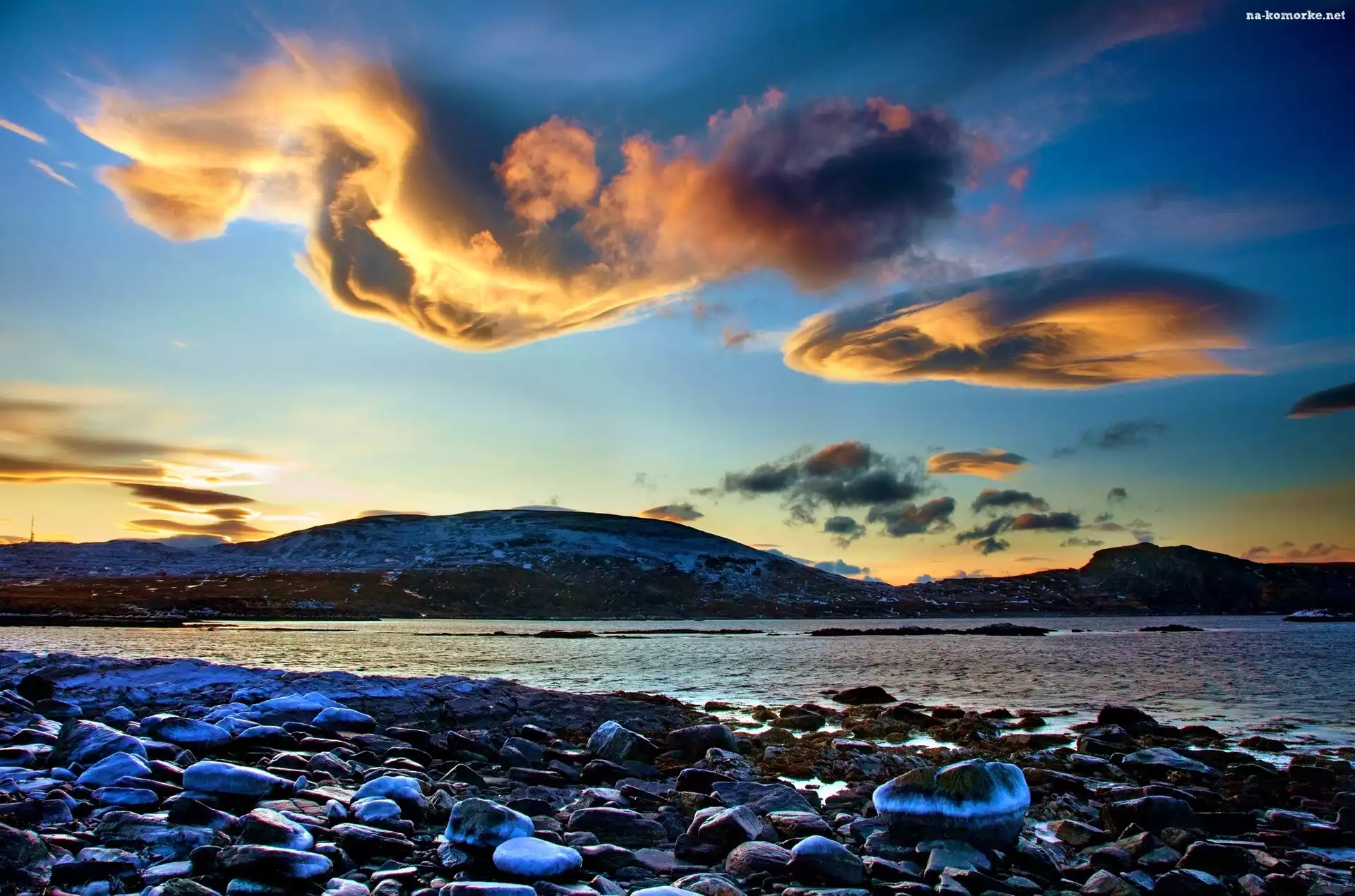 Jezioro, Kamienie, Chmury na Komórkę