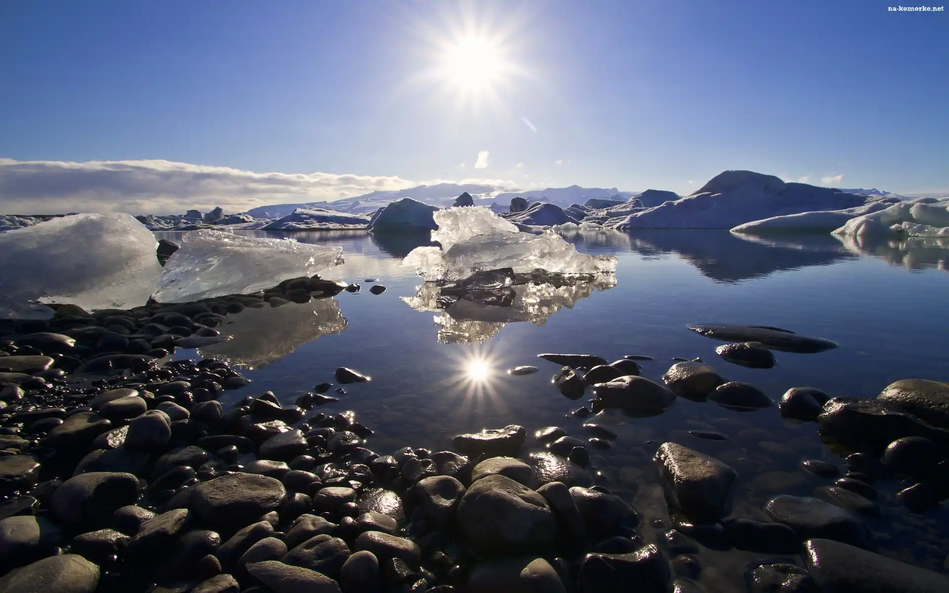 Jezioro, Kamienie, Słońce na Komórkę