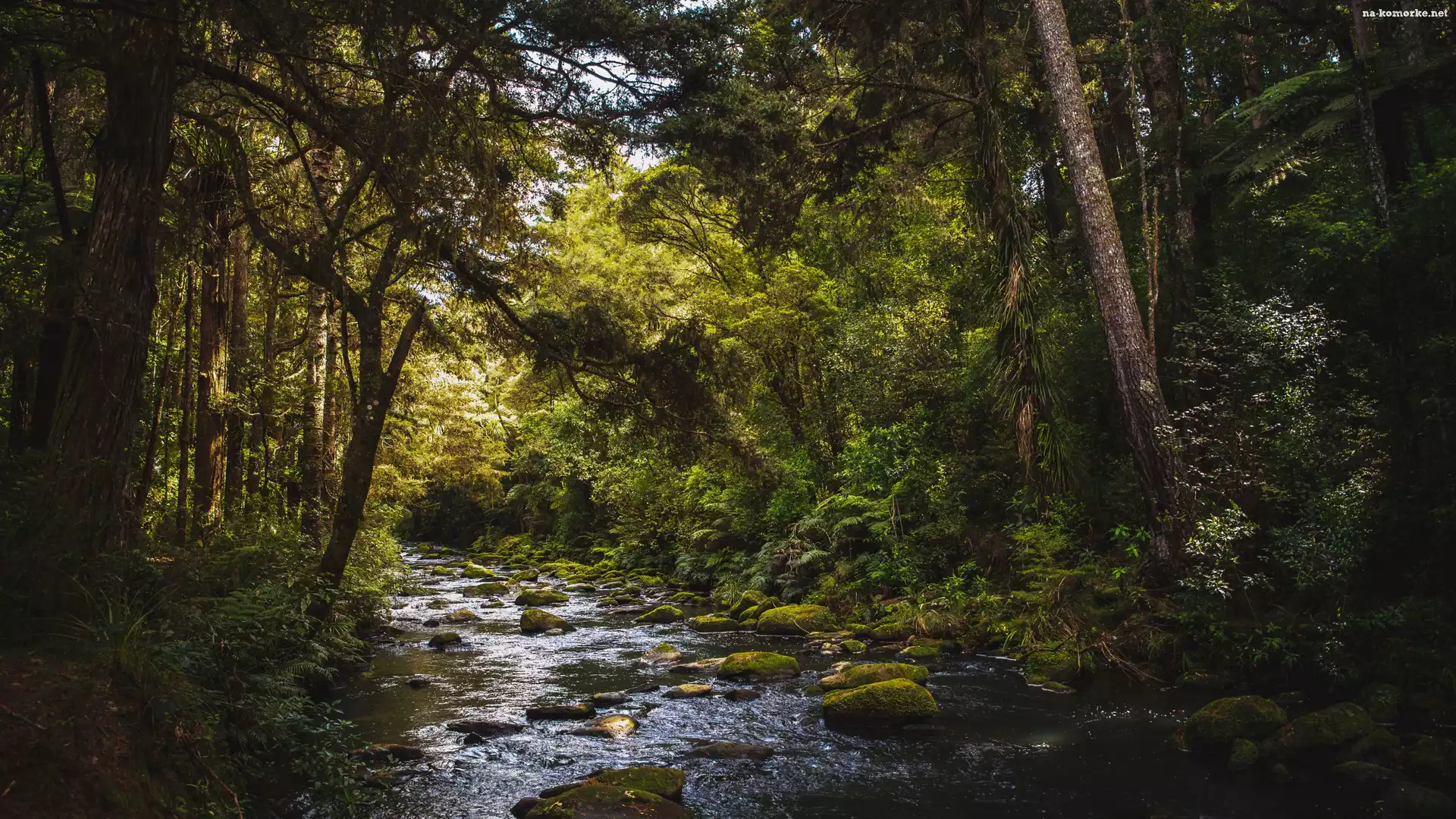 Kamienie, Las, Drzewa, Krzewy, Rzeka na Komórkę