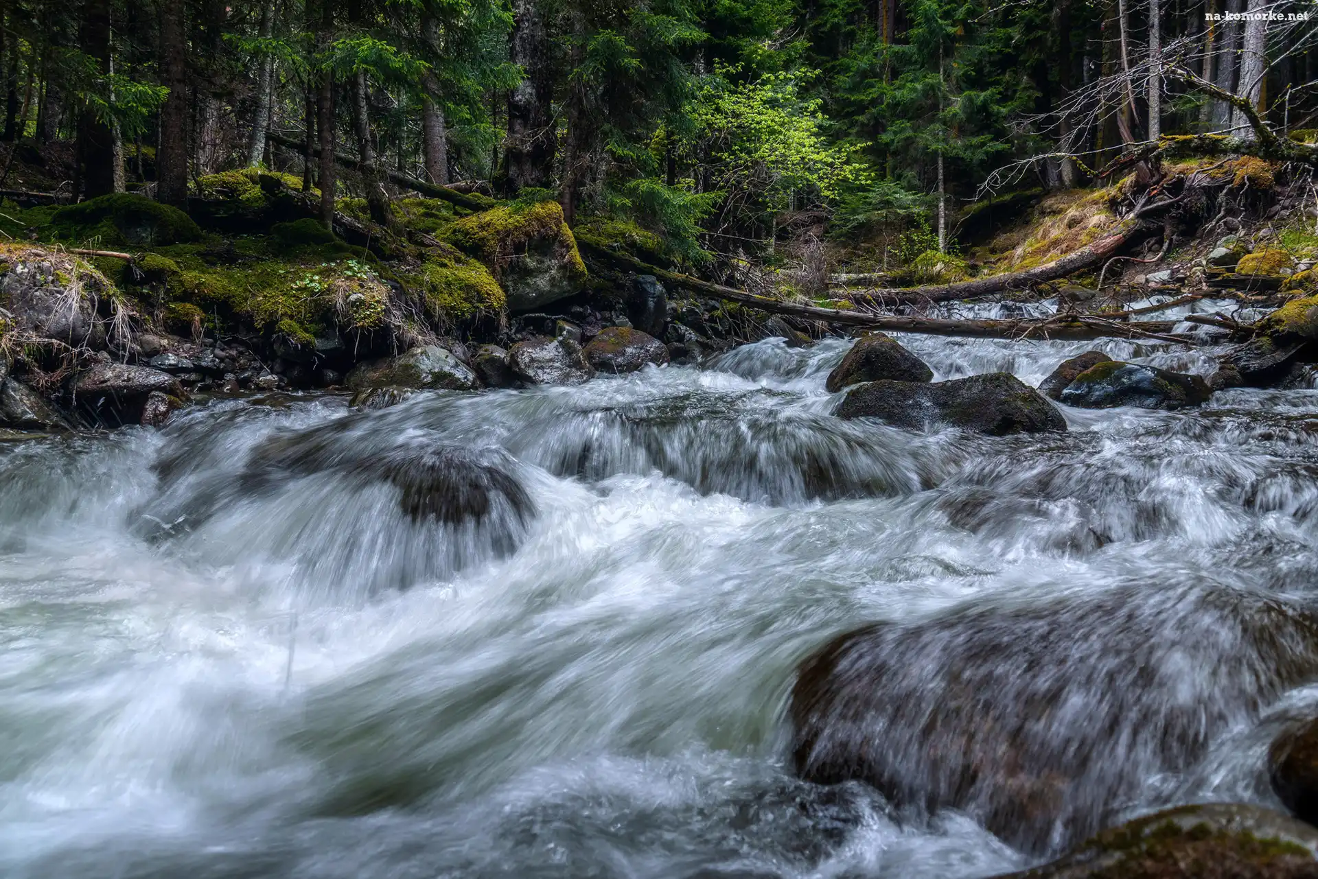 Kamienie, Rwąca, Rzeka, Las, Drzewa na Komórkę