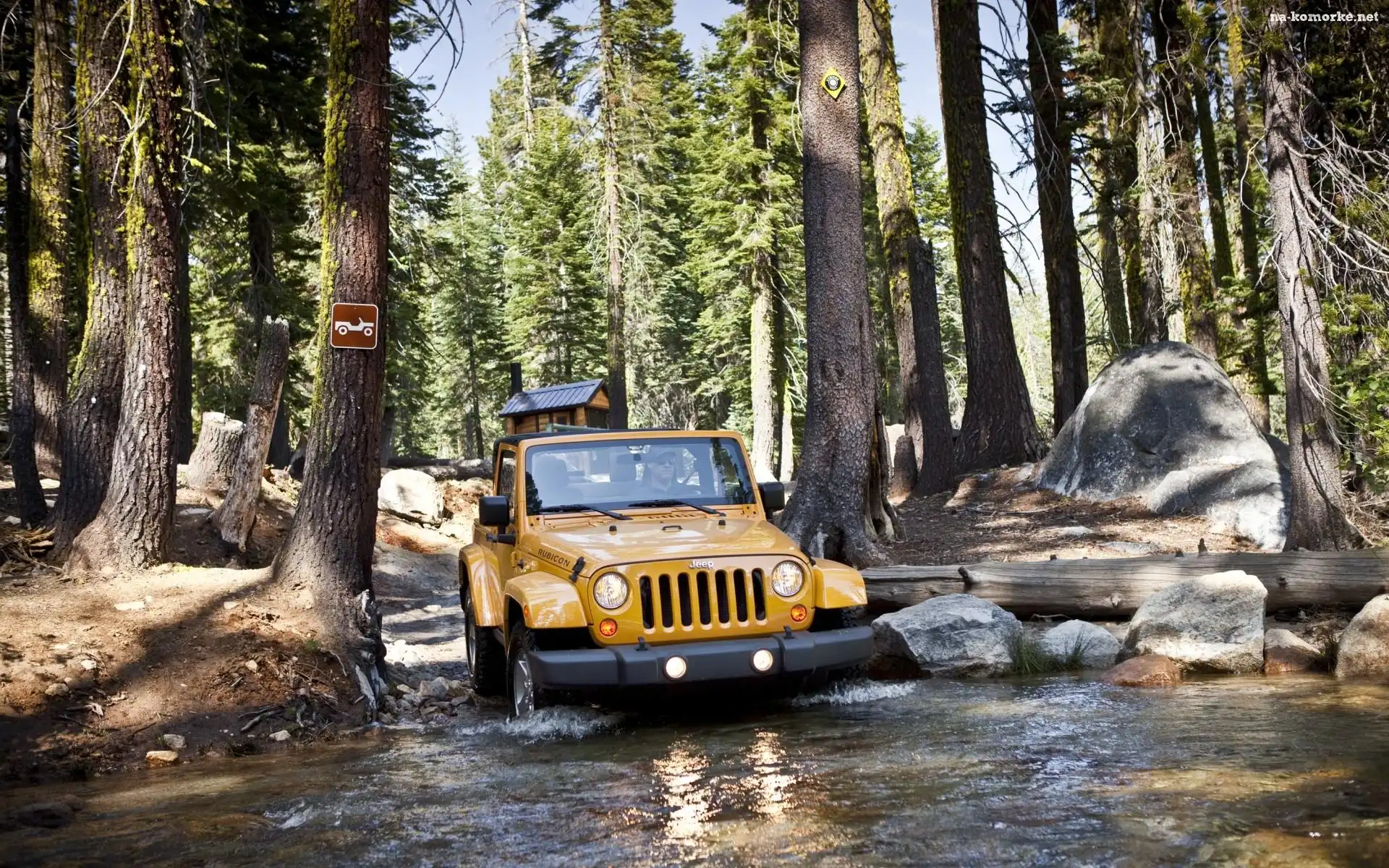 Kamienie, Jeep, Wrangler, Las, Bagna na Komórkę