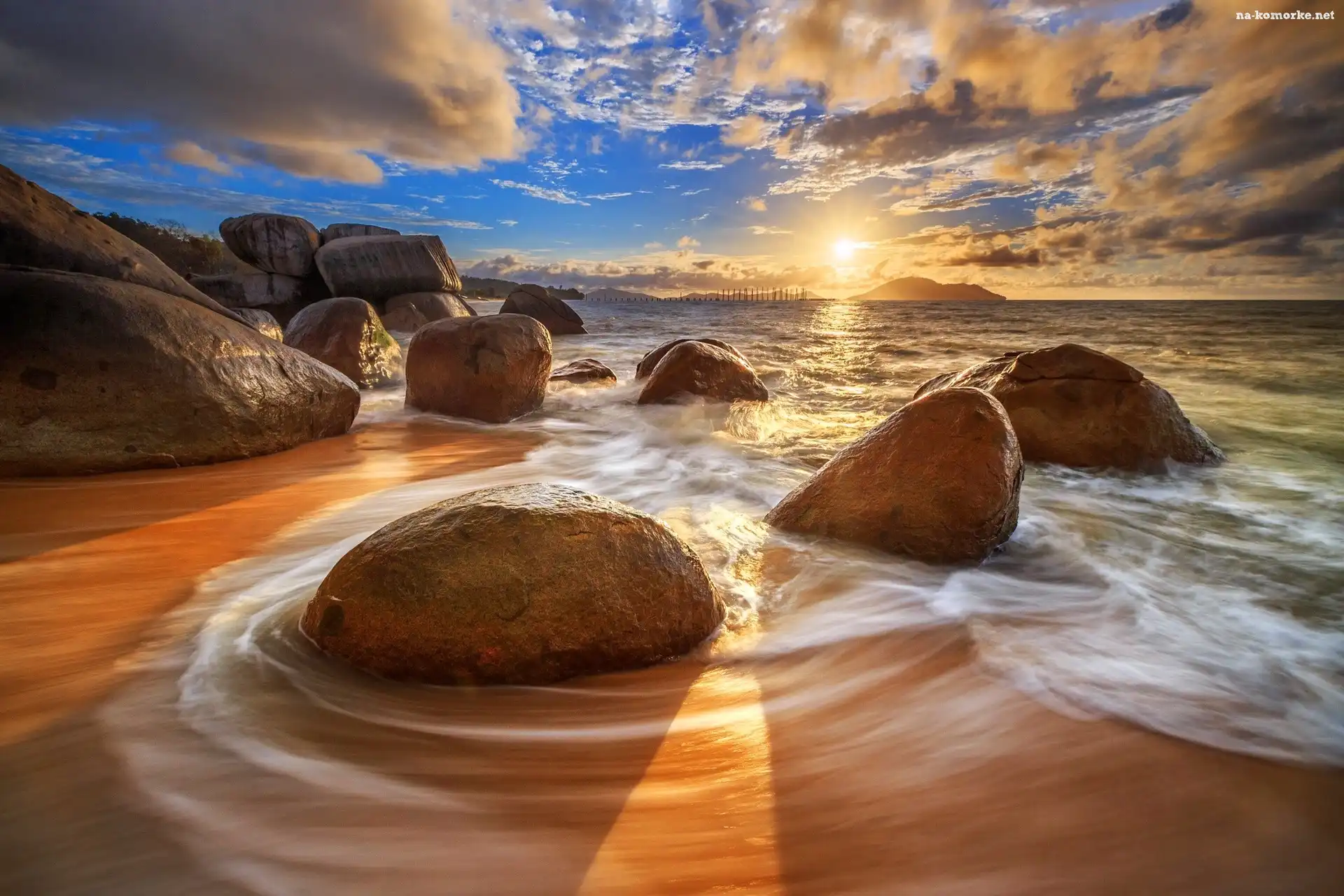 Kamienie, Zachód, Słońca, Morze, Wielkie na Komórkę