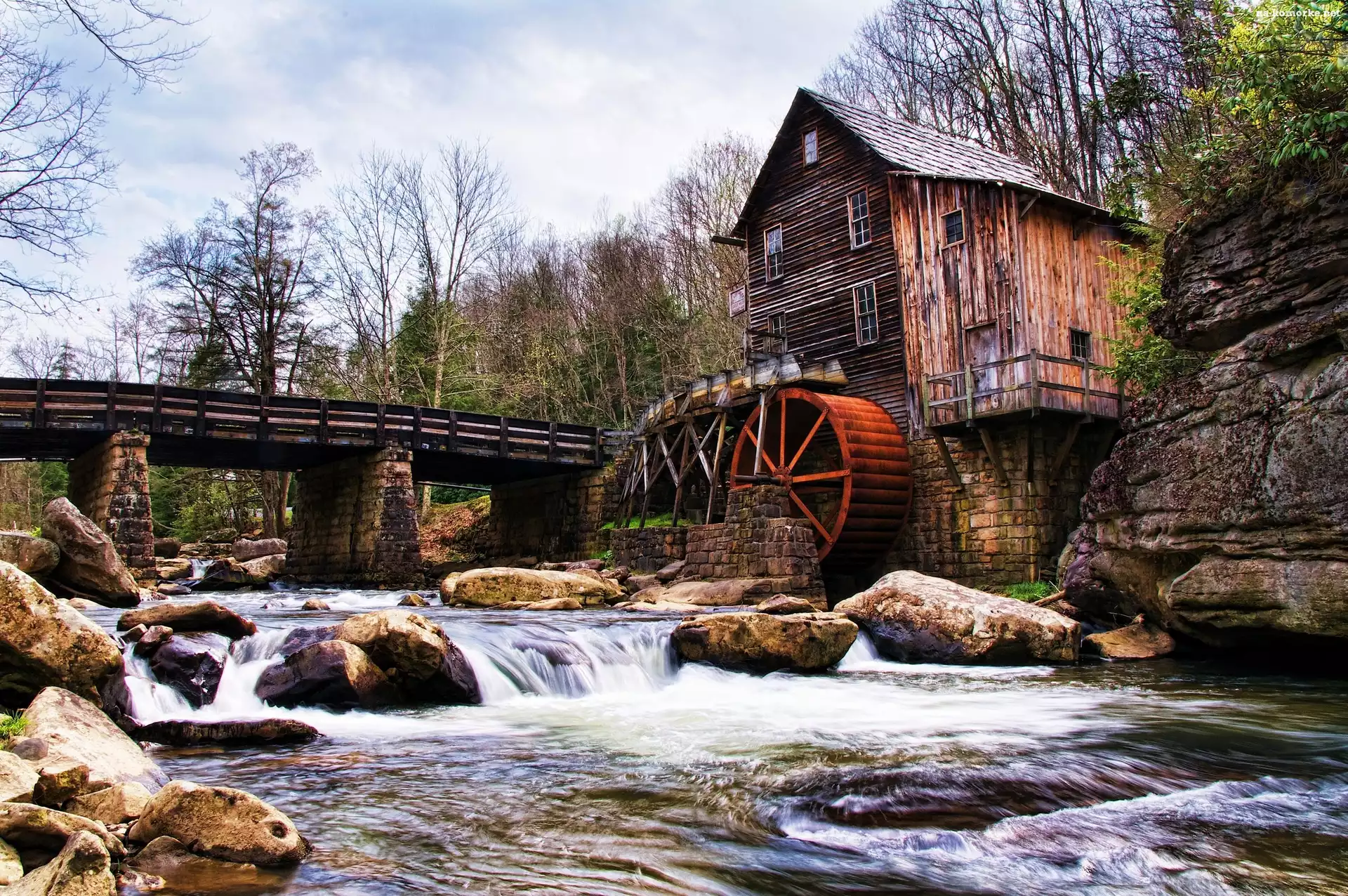 Las, Kamienie, Rzeka Niebo, Kamienie, Chmury, Fale Rzeka, Góry, łąka Oświetlone, Miasto, Nocą Kamienie Kraków, Wisła, Wawel Most, ulica Kamienny, Jezioro, Brzeg, Łódka Światła, Most, Noc, Droga, Miasto Wysokie, Skały, Most Rzeka, Skały Tarn, Dolina, Francja, Millau, Rzeki, Wiadukt Most, Betonowe, Podpory Rzeka, Jesień, Glade Creek Grist Mill, Skały, Stany Zjednoczone, Drzewa, Wirginia Zachodnia, Młyn wodny, Park Babcock State