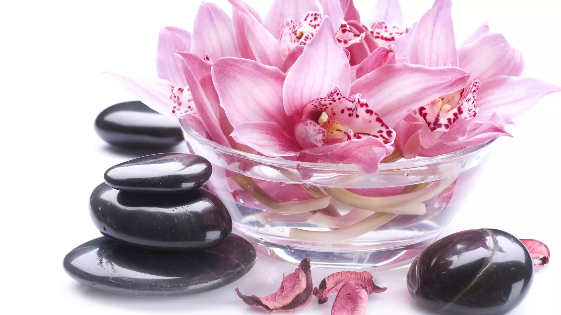 Czarne, Szklane, Storczyki, Kamienie, Kwiaty, Naczynie na Komórkę