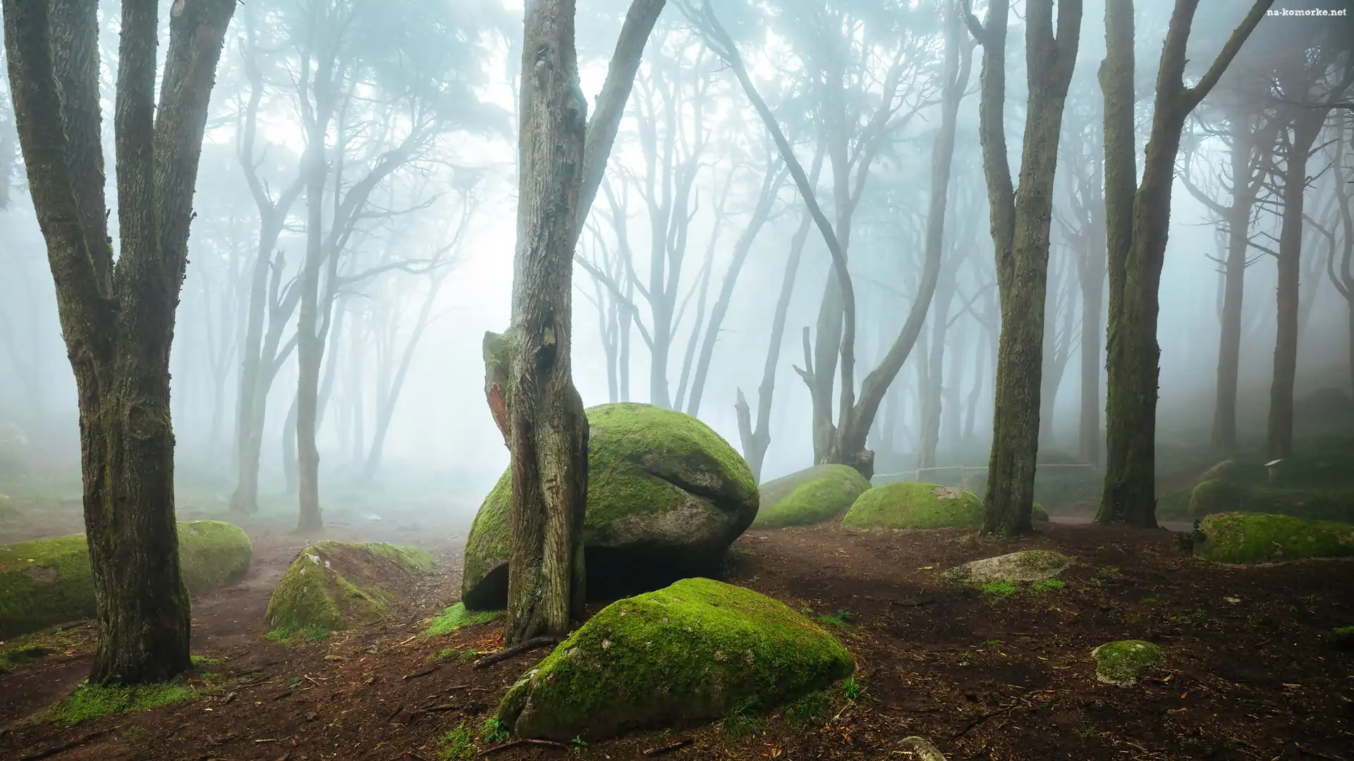 Portugalia, Głazy, Mgła, Park Narodowy Sintra-Cascais, Las, Omszałe, Kamienie na Komórkę