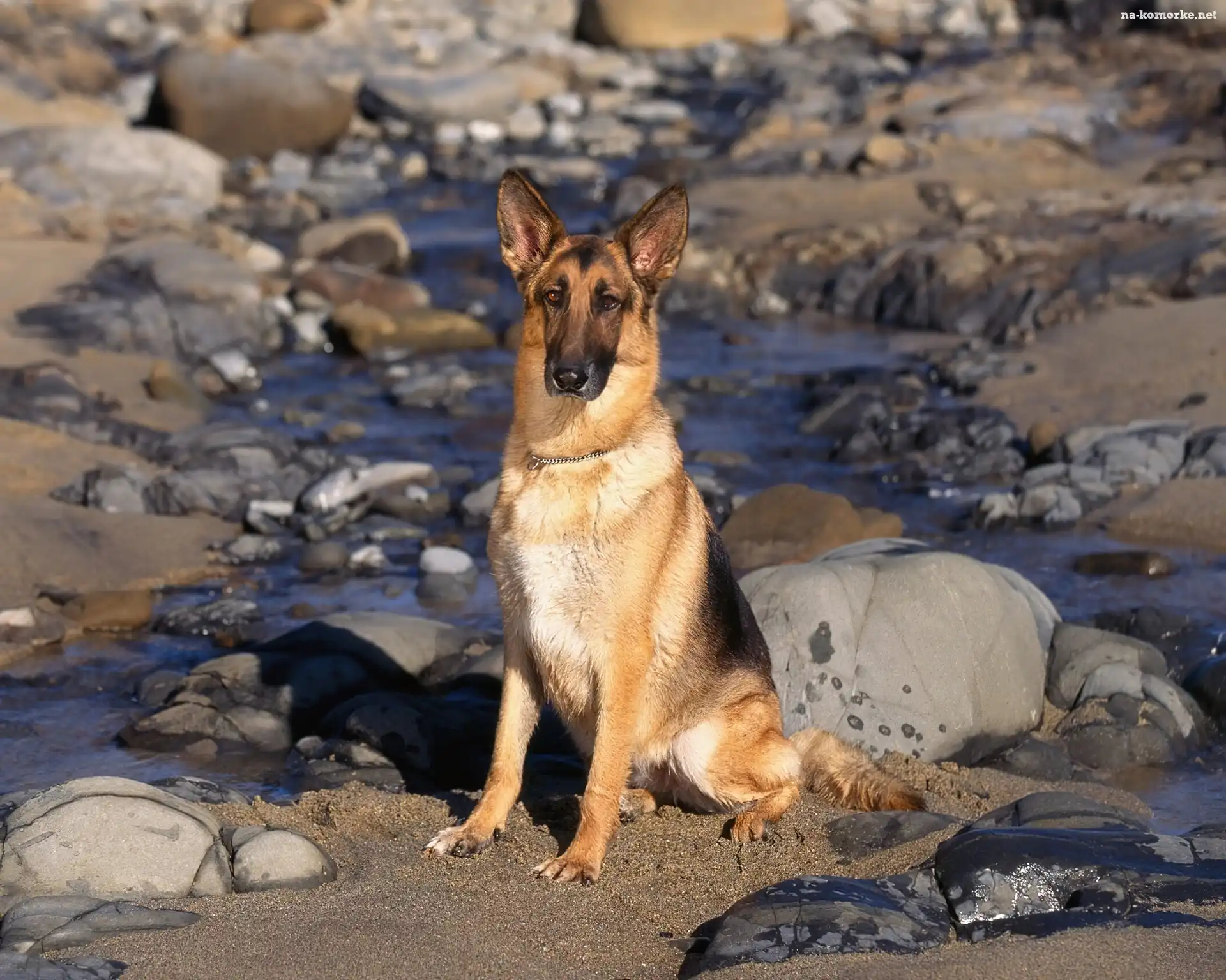 Kamienie, Pies, Owczarek, Niemiecki, Woda na Komórkę