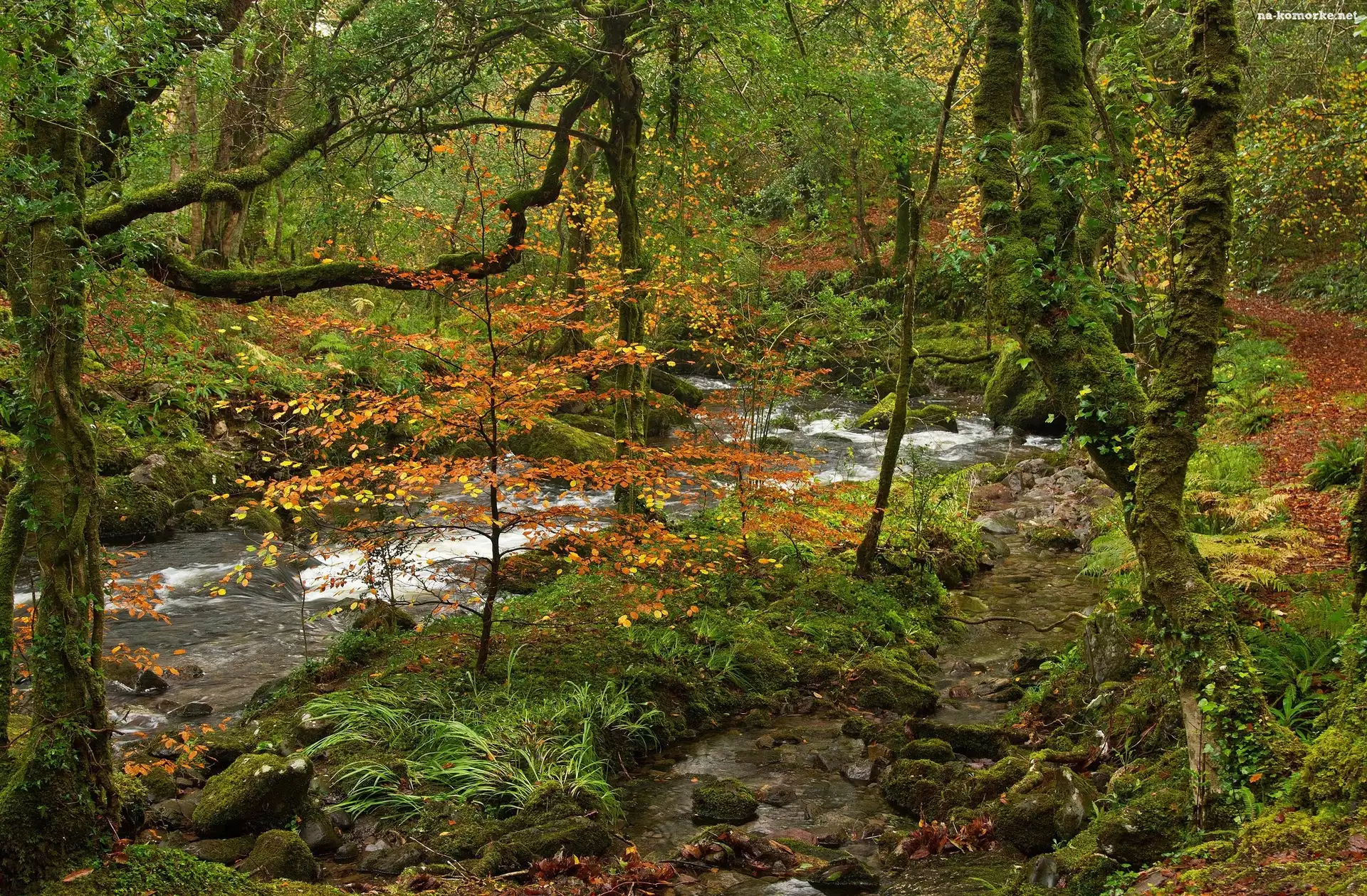 Kamienie, Jesień, Las, Omszałe, Drzewa na Komórkę