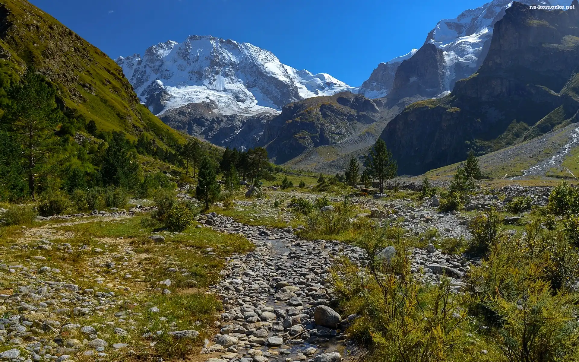Kamienie, Dolina, Góry, Krzewy, Potok, Drzewa na Komórkę