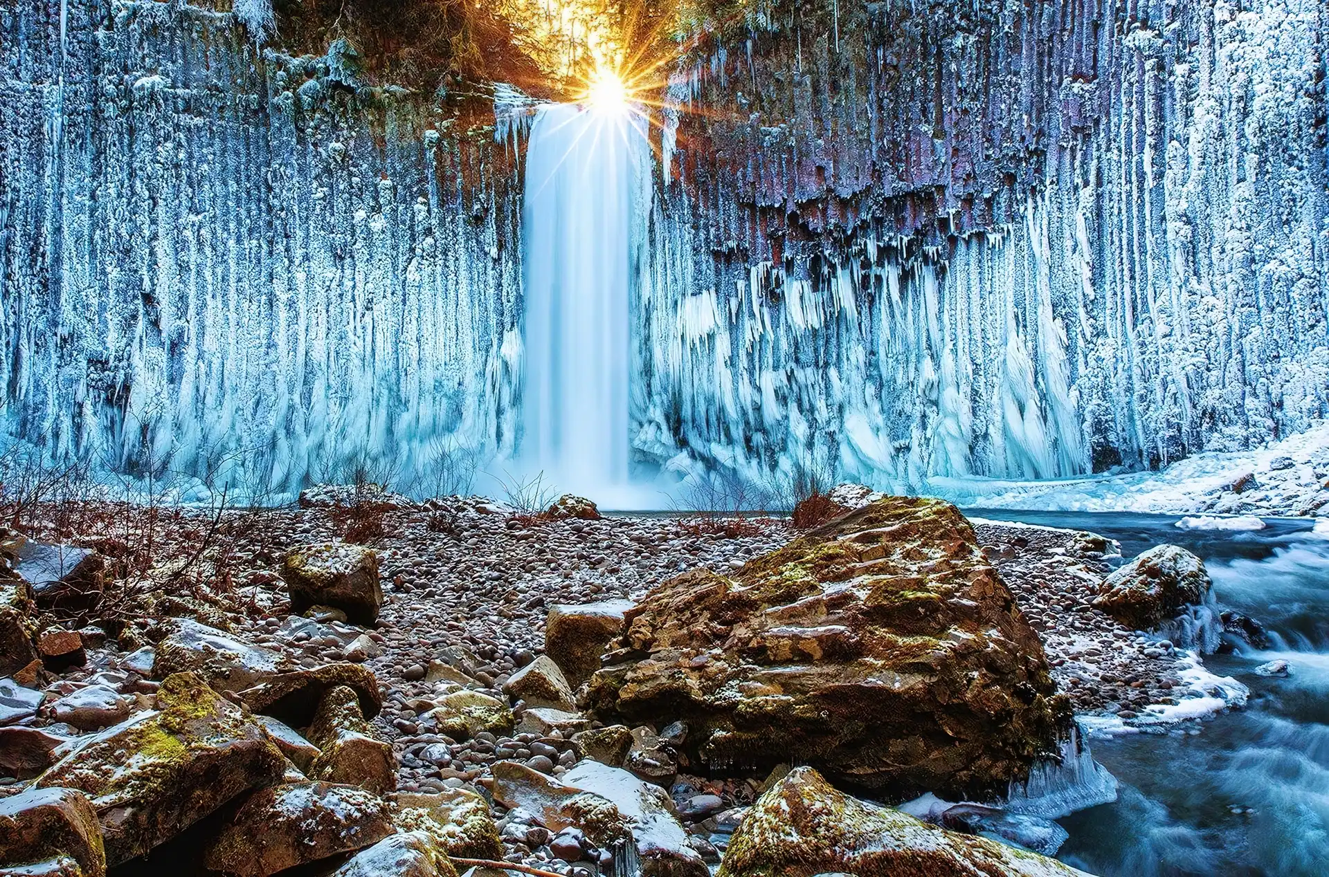 Kamienie, Zamarznięty, Wodospad, Promienie, Słońca na Komórkę