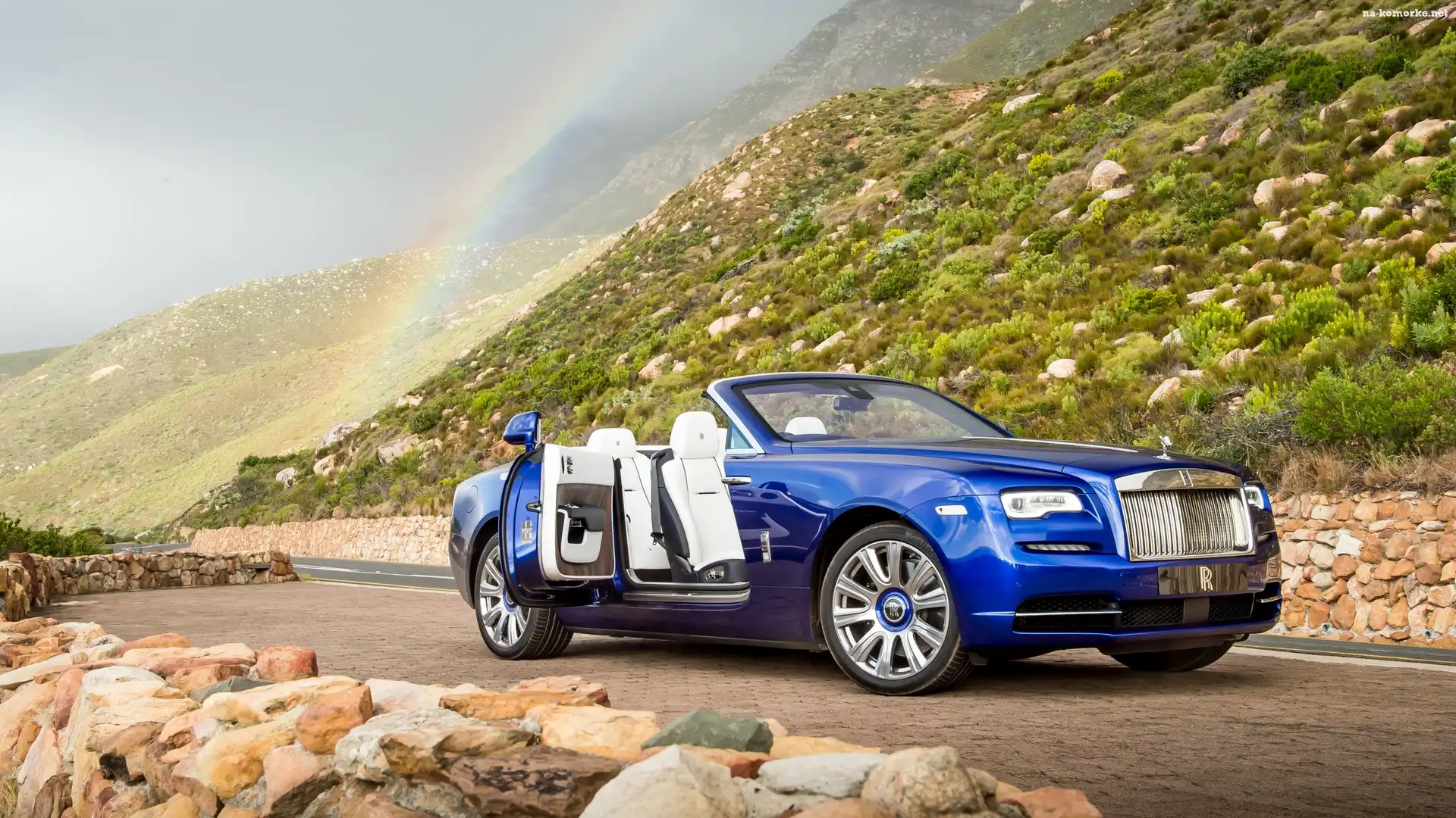 2016, Wzgórza, Tęcza, Niebieski, Kamienie, Droga, Kabriolet, Rolls-Royce Dawn na Komórkę