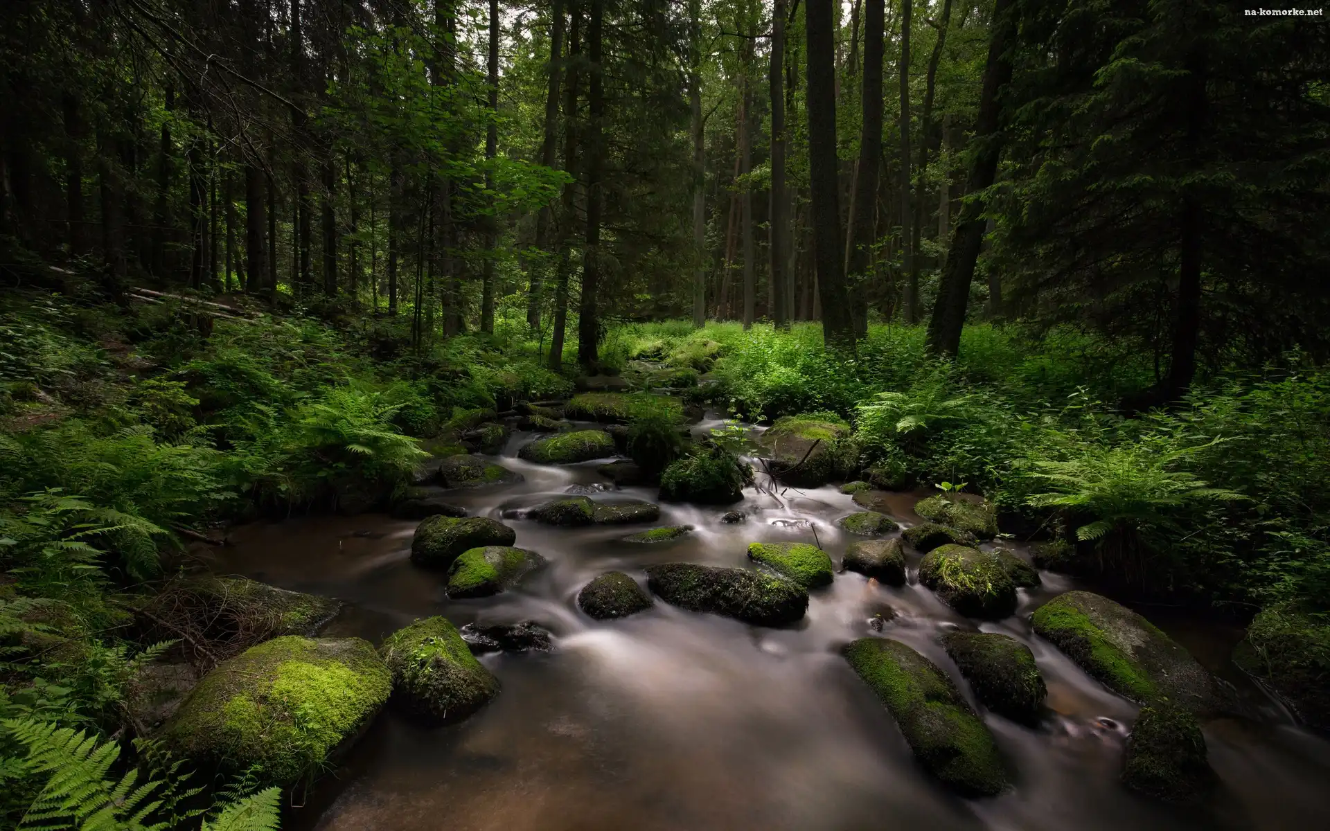 Kamienie, Las, Drzewa, Rzeka, Omszałe na Komórkę