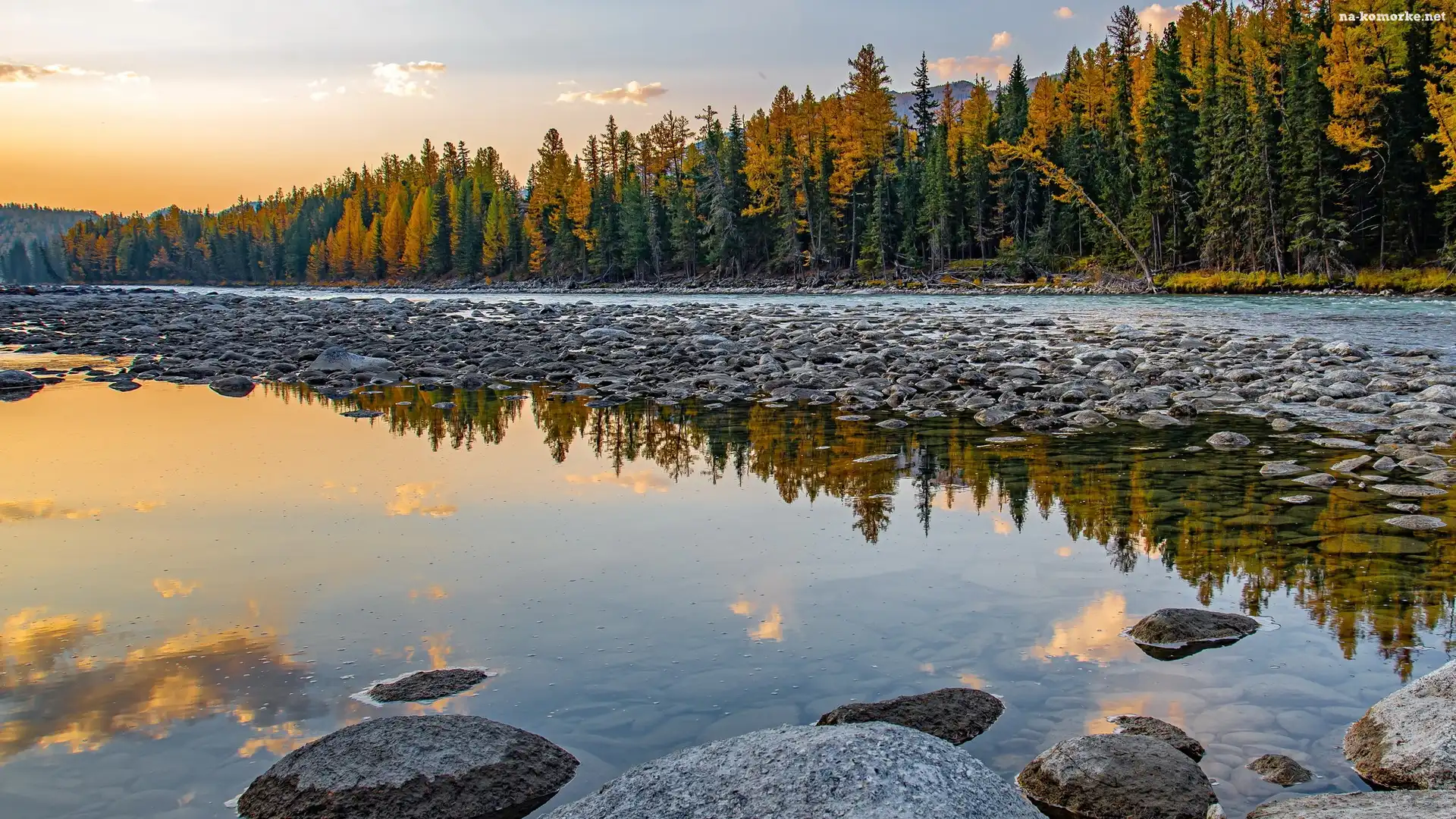 Kamienie, Jesień, Las, Rzeka, Drzewa na Komórkę