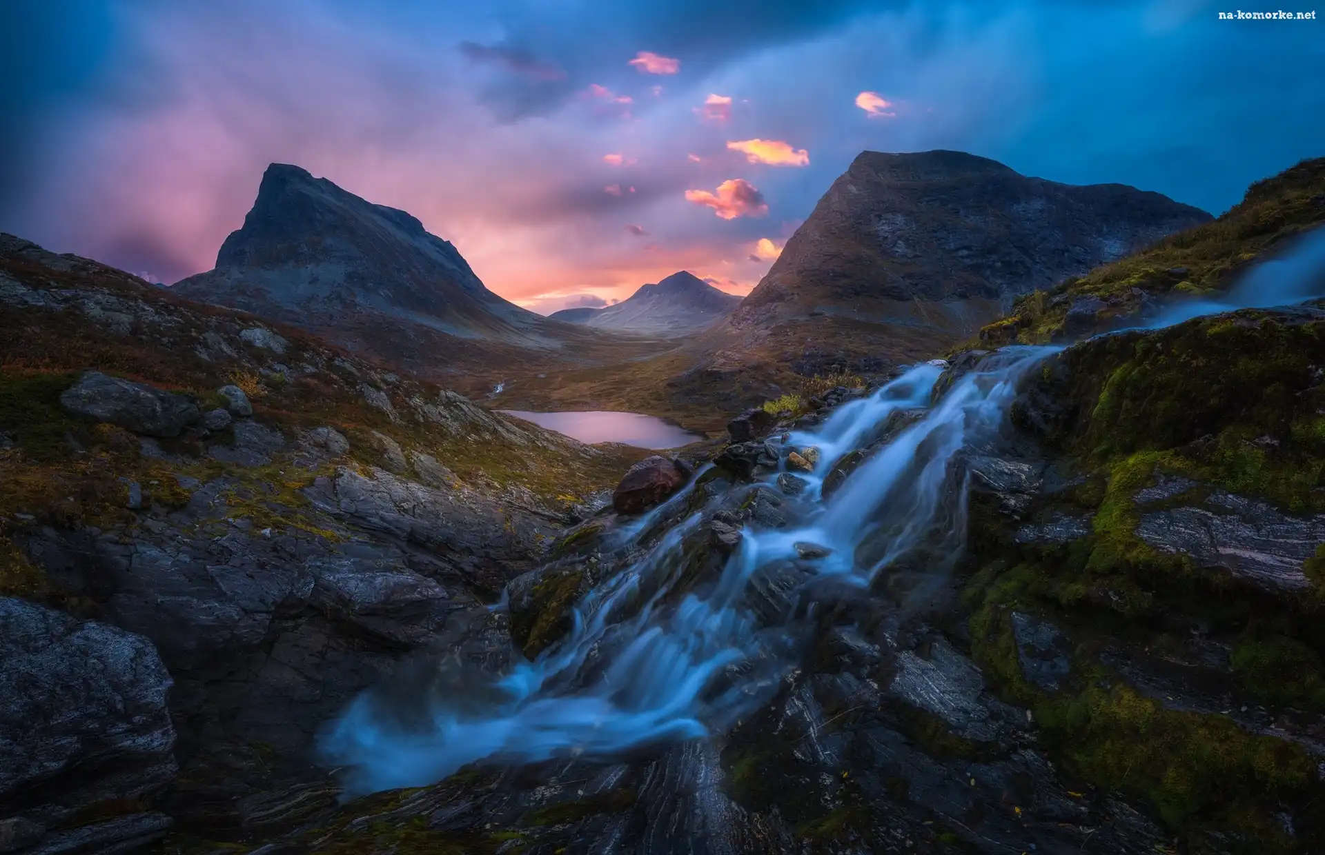 Kamienie, Góry, Jezioro, Strumień, Skały na Komórkę