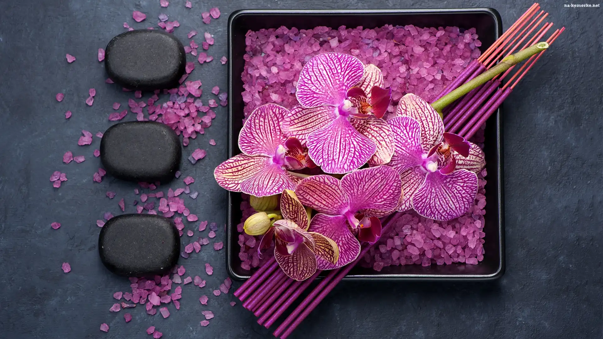 SPA, Kamienie, Storczyki, Kadzidełka, Kwiaty, Sól, Kryształki, Taca na Komórkę