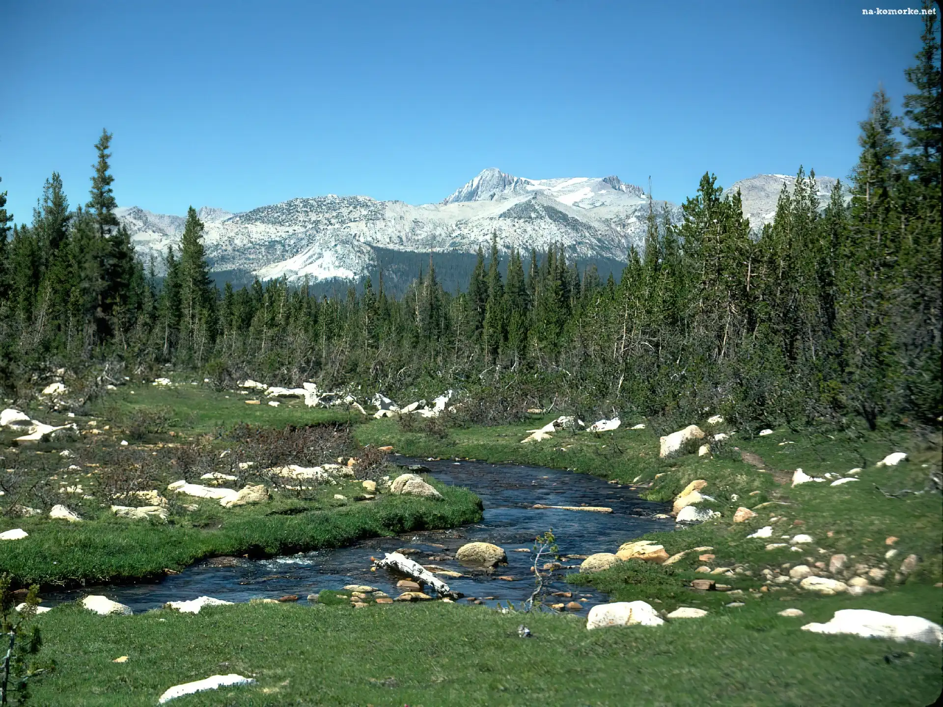 Kamienie, Górski, Potok, Góry, Trawa, Drzewa na Komórkę