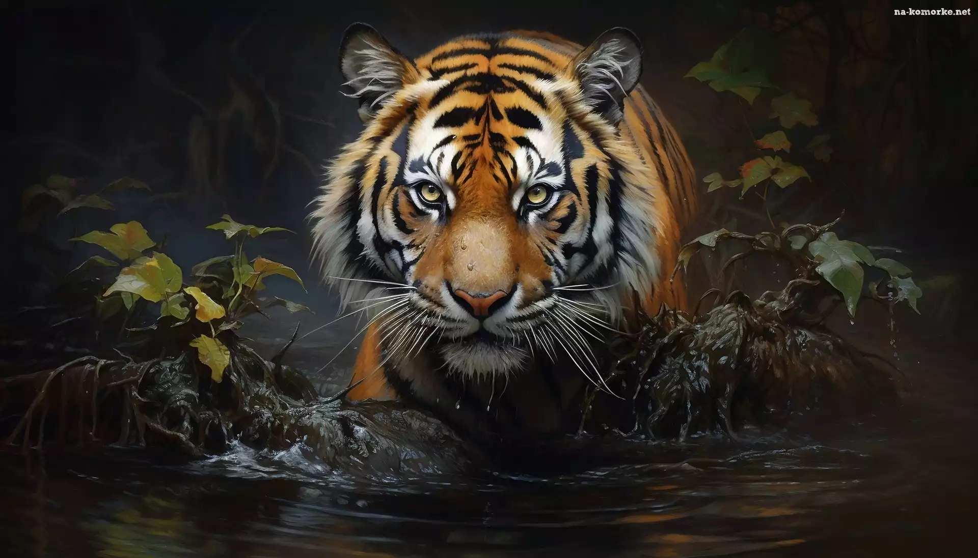 Tygrys, Kamienie, Woda, Rośliny, Grafika na Komórkę