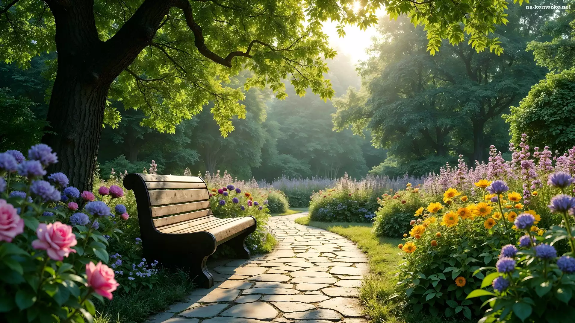 Ścieżka, Park, Ławka, Kamienista, Kwiaty, Drzewa na Komórkę