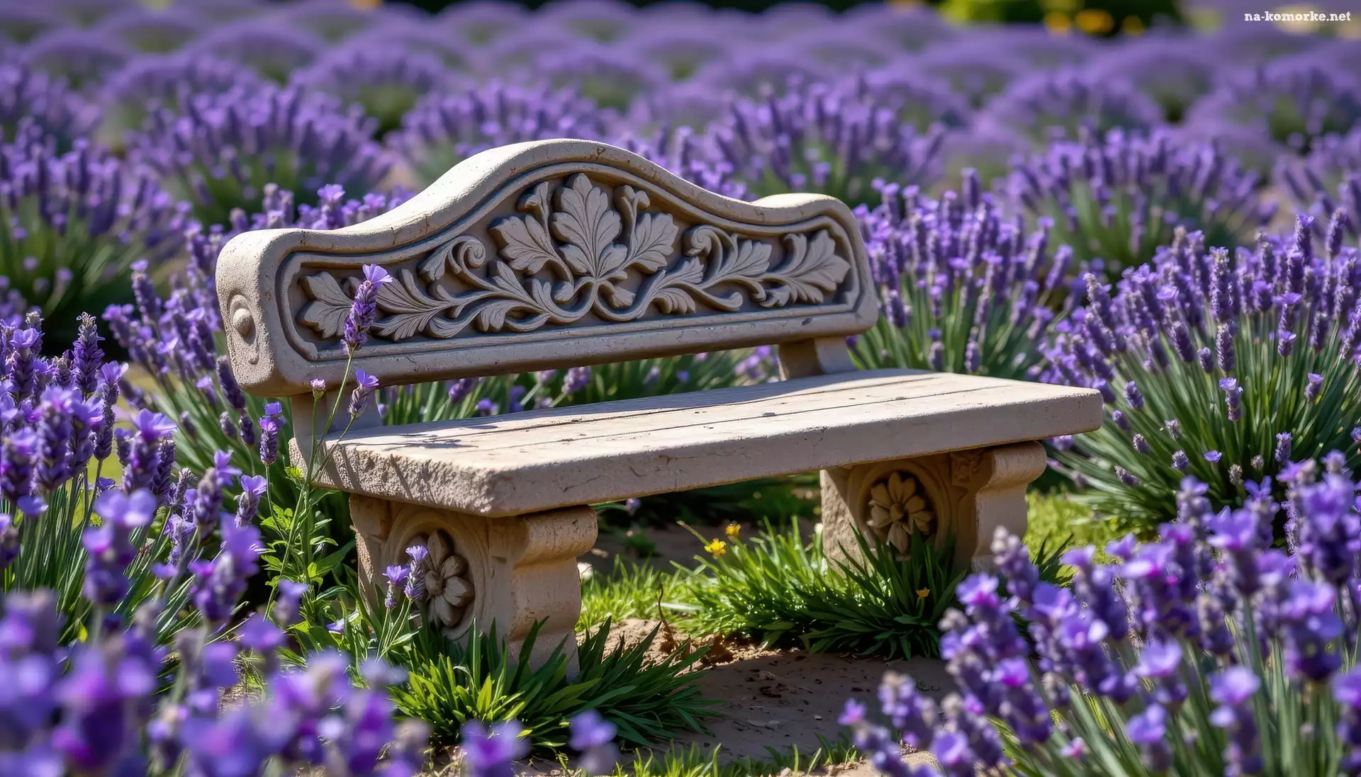 Ławka, Kwiaty, Lawenda, Kamienna, Grafika AI na Komórkę