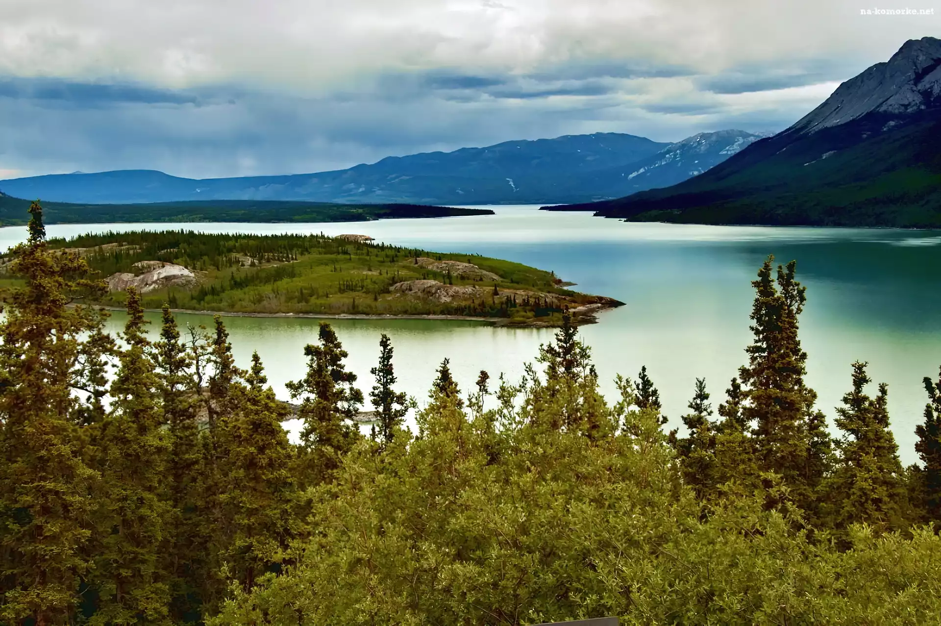 Kanada, Rzeka, Drzewa, Góry, Yukon na Komórkę