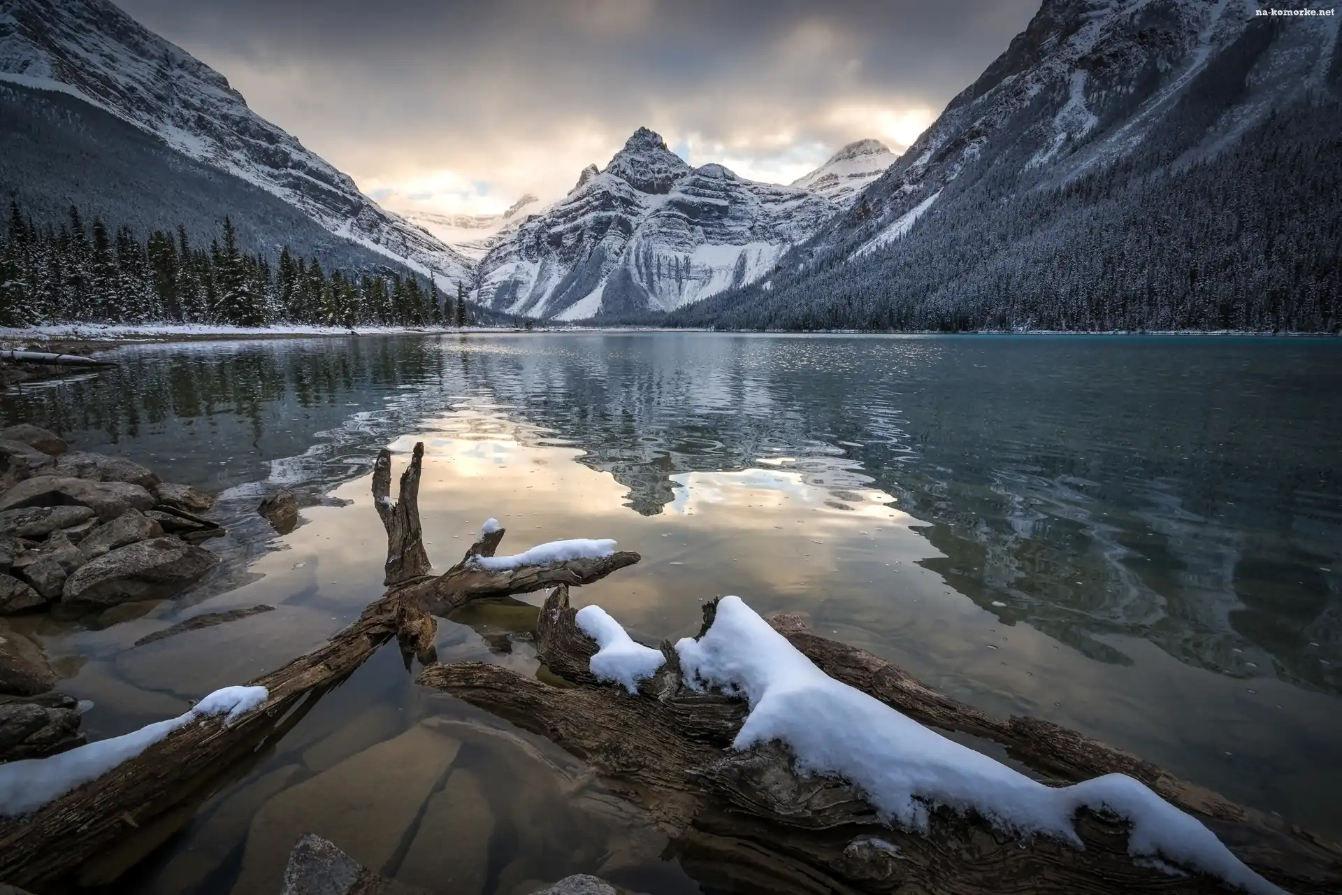 Kanada, Góry, Jezioro Mistaya Lake, Zima na Komórkę