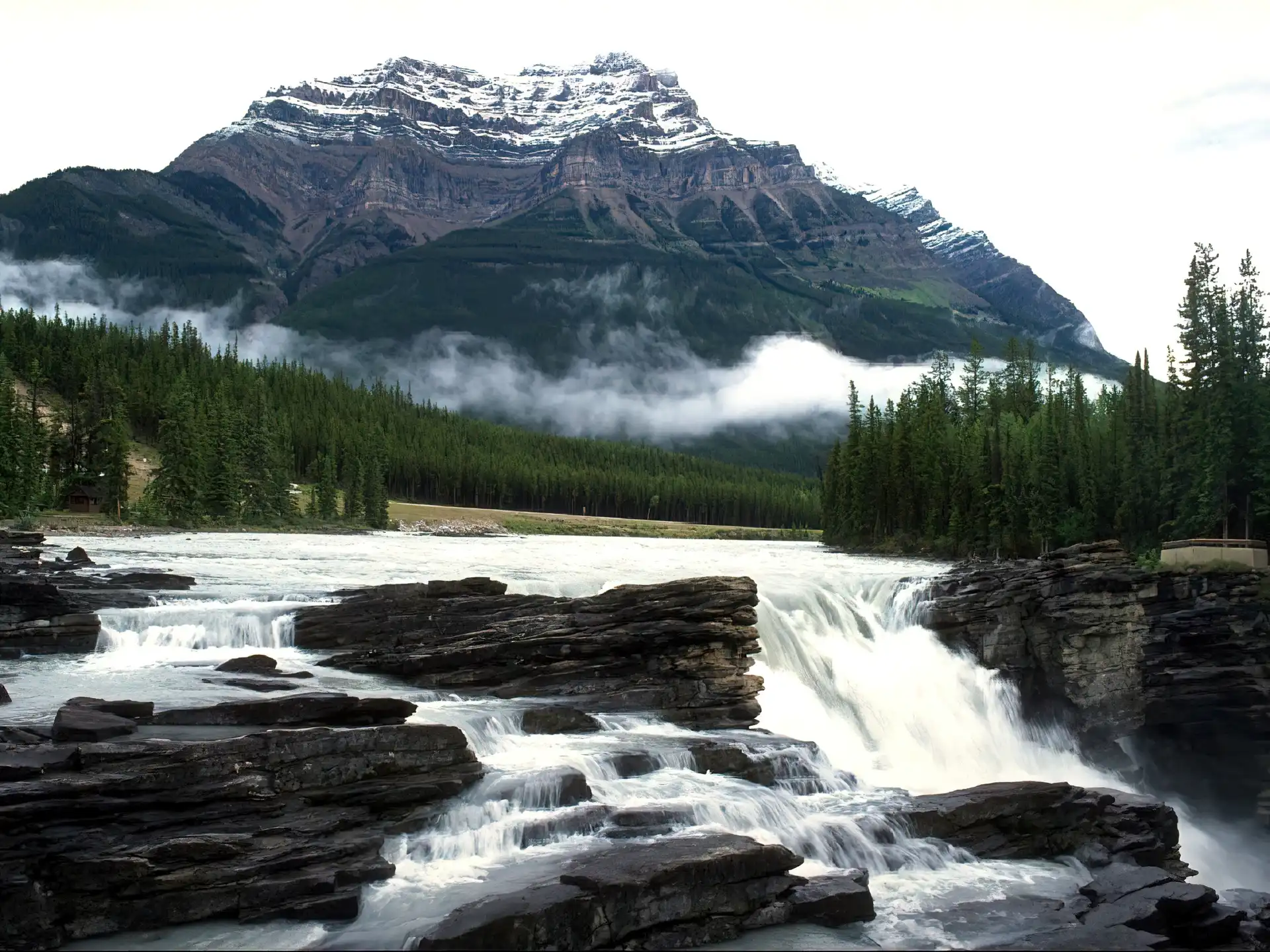 Kanada, Góry, Wodospad, Drzewa na Komórkę