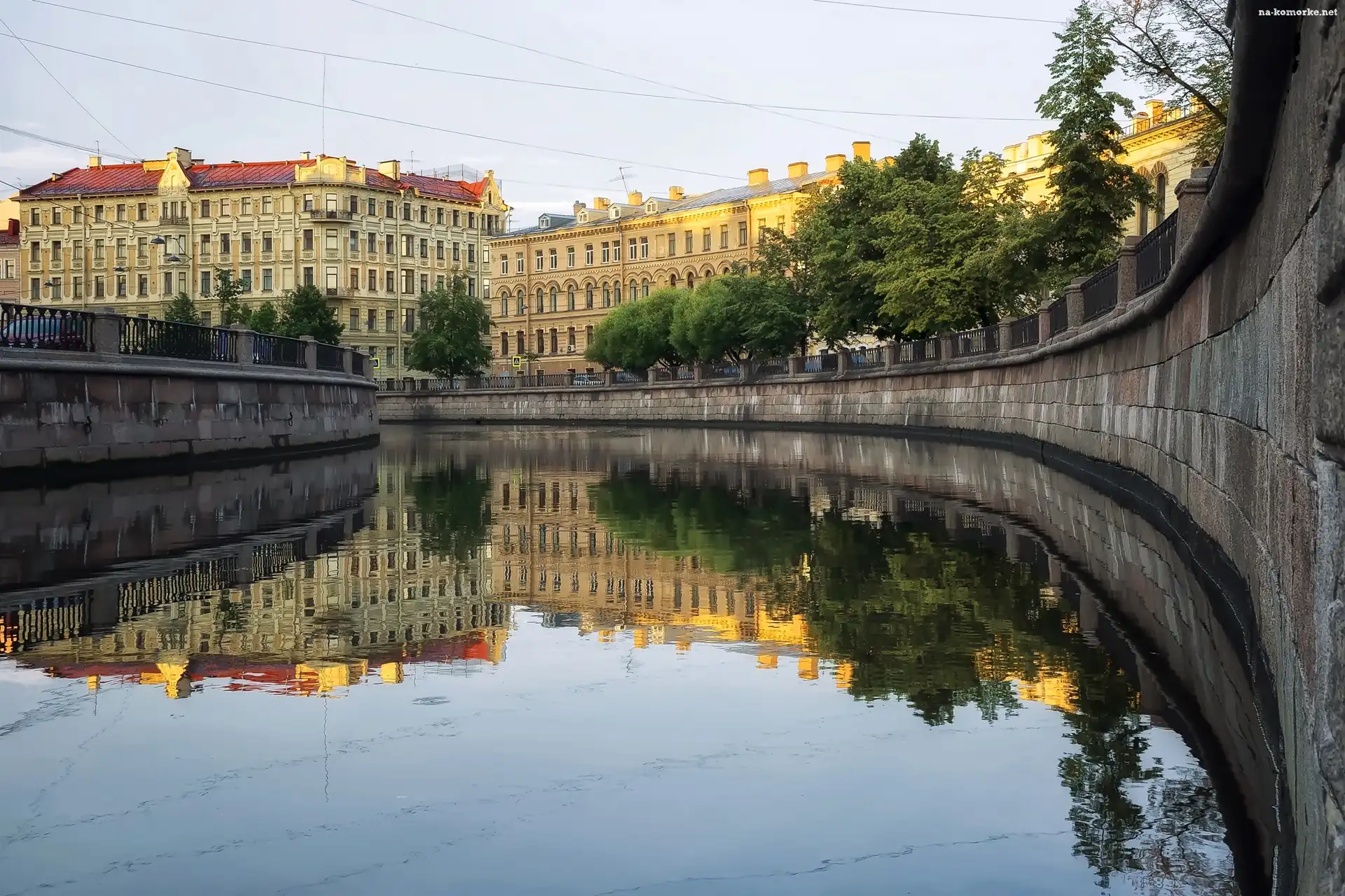 Kanał, Odbicie, Budynki, Drzewa na Komórkę