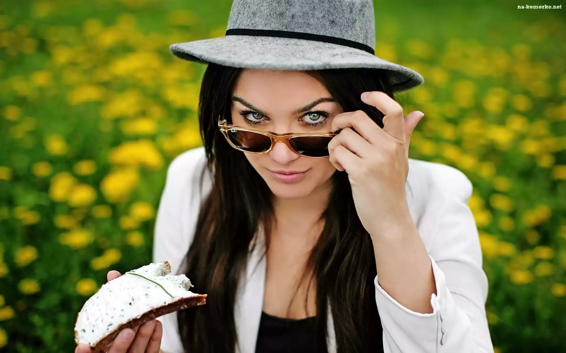 Kanapka, Kobieta, Kapelusz, Ciemne, Okulary na Komórkę