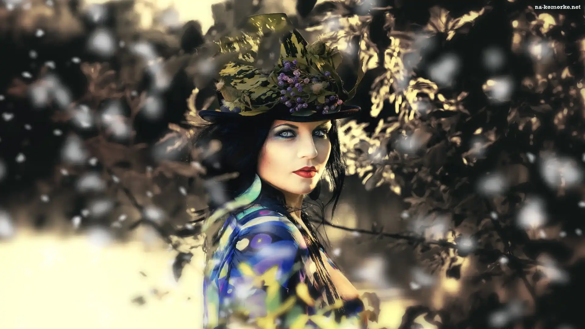 Kobieta, Kapelusz, Gałęzie na Komórkę