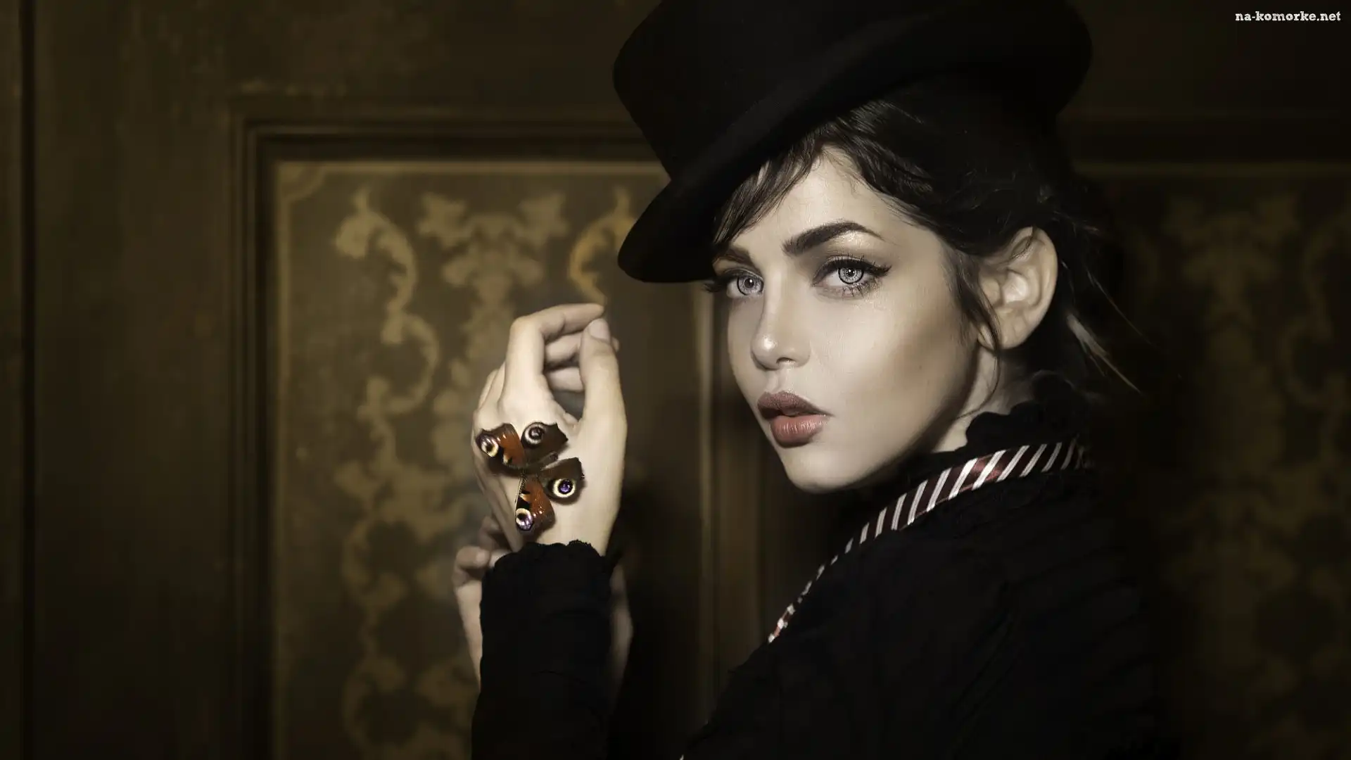 Kobieta, Kapelusz, Motyl na Komórkę
