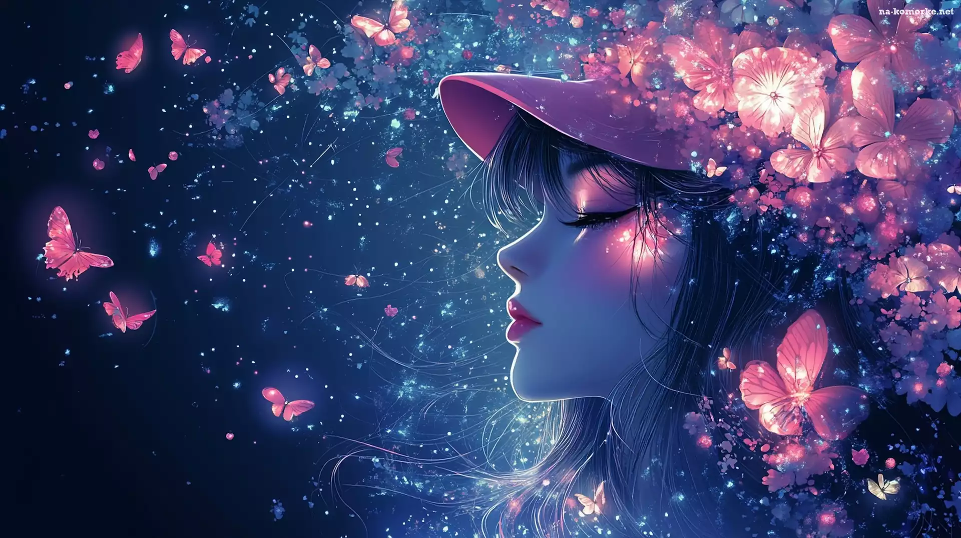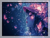 Dziewczyna, Kapelusz, Motyle, Profil, Grafika na Komórkę