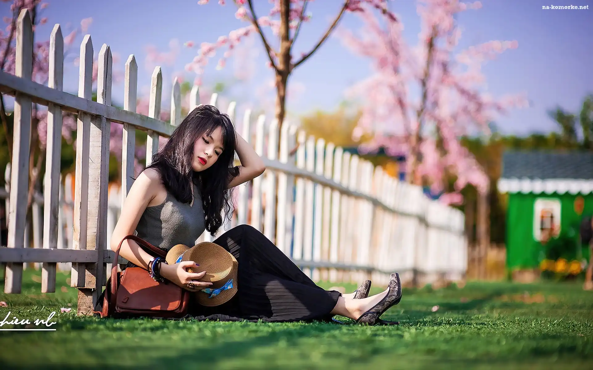 Kapelusz, Brunetka, Trawa, Płot, Torebka na Komórkę